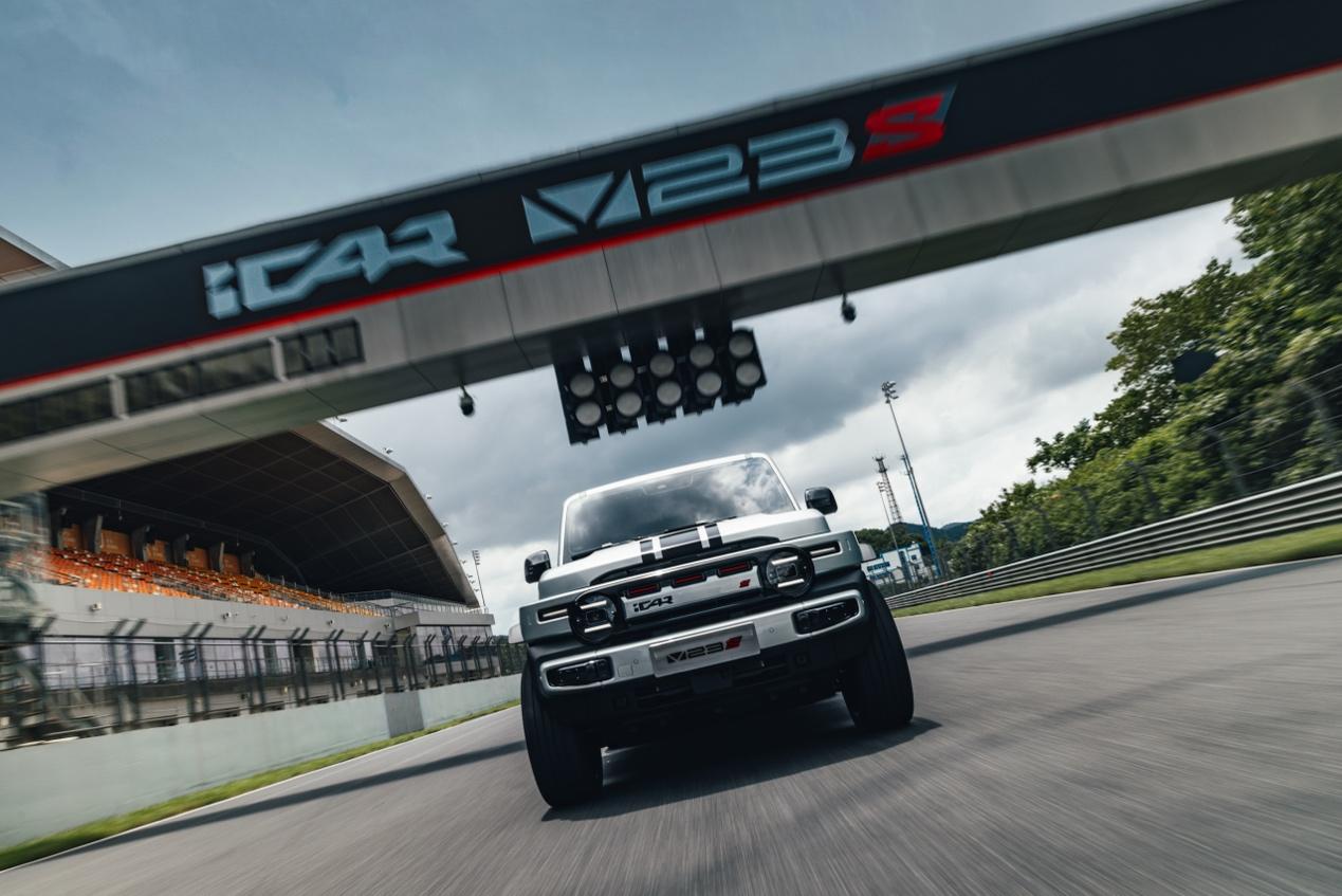 相比于老款车型,全新超级V23进行了多达119项体验优化与配置革新,实现了全方位的进化。在动力系统升级方面,本次全新超级V23实现了性能方面的飞跃。首次推出的V23S四驱巅峰性能版搭载了青山三合一和汇川高性能六合一电驱组合,拥有高达455匹马力,232PS/t的同级最强推重比,零百加速最快仅需4.5秒。强悍的性能不止是纸面数据,更是赛道中的成绩。在浙江国际赛车场,全新超级V23S以1分50秒889的圈速成绩,领先AMGG63近10秒,创造了浙赛最速方盒子的赛道纪录,充分证明了其卓越的性能实力,也让消费者看到了iCAR在性能领域的深厚技术底蕴。