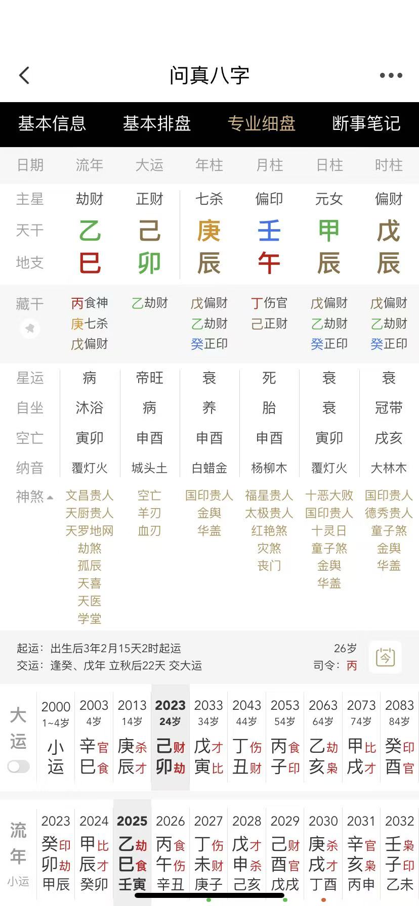 大运:辛巳,庚辰,己卯,戊寅,丁丑,丙子,乙亥,甲戌,癸酉,4岁运。