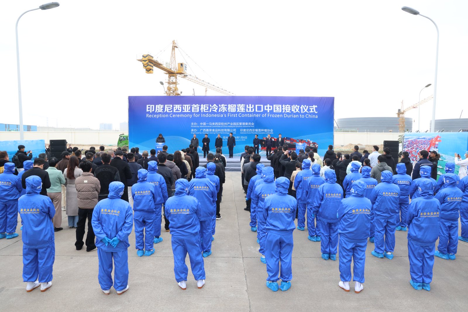 1月6日上午,印度尼西亚首柜冷冻榴莲出口中国接收仪式在广西钦州综合保税区举行,标志着印尼冷冻榴莲首次通过海运输华、直接进入中国市场,也意味着中国—东盟水果贸易迈入更加高效、规范化的新阶段。