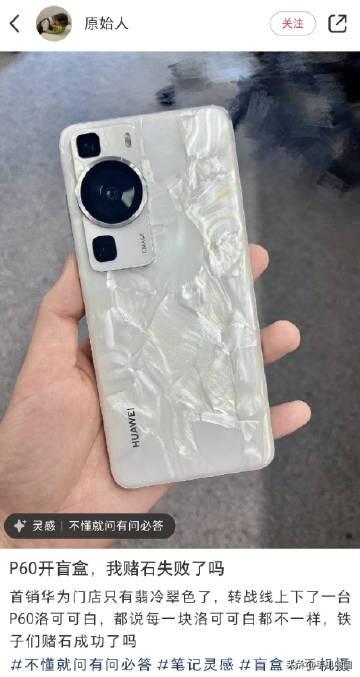 很多用户把开箱洛可可白配色的华为P60称为「赌石」,又称「数码盲盒」,因为每一台