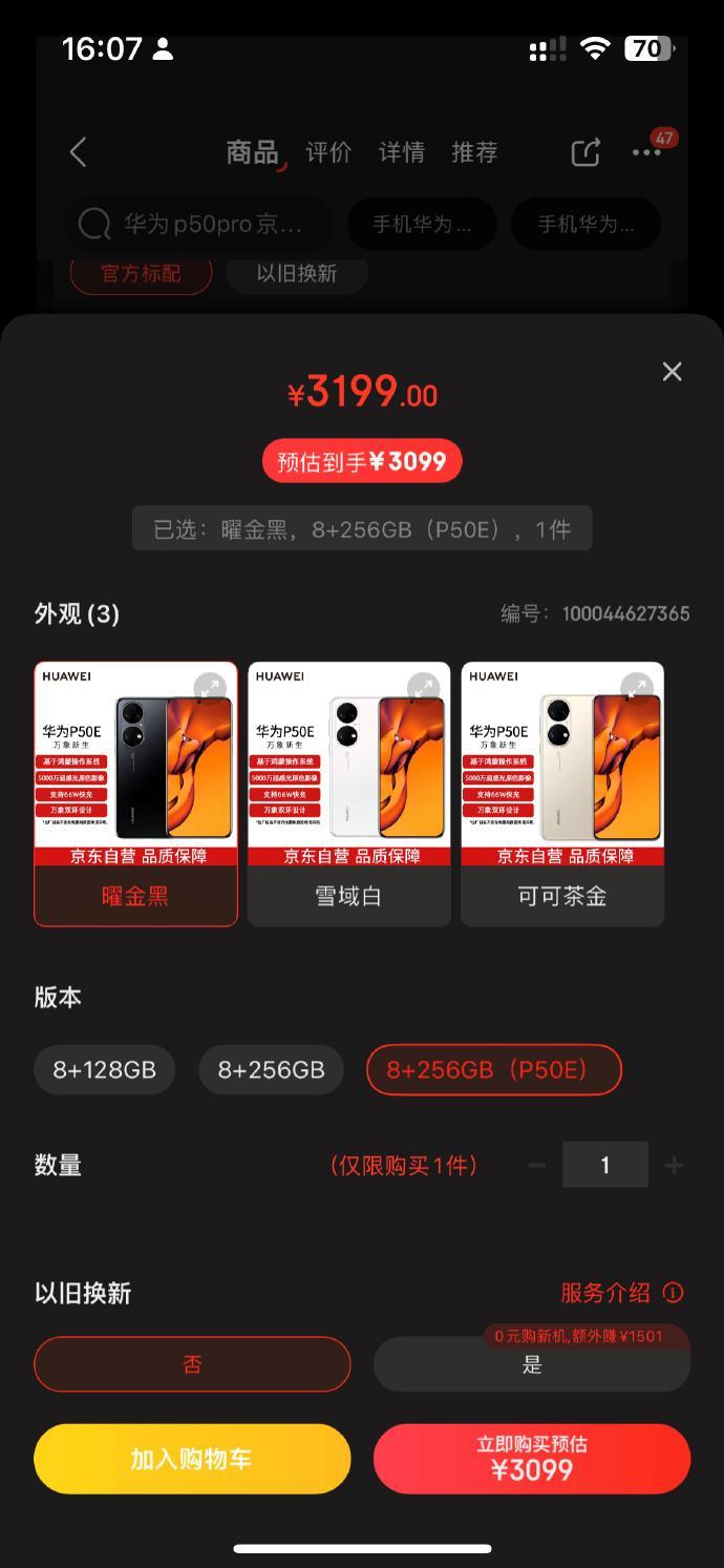 华为 P50E官方翻新开售,2988起,不过京东上的全新机怎么比官翻机还便宜……
