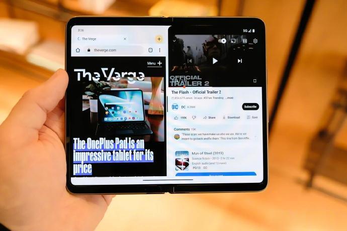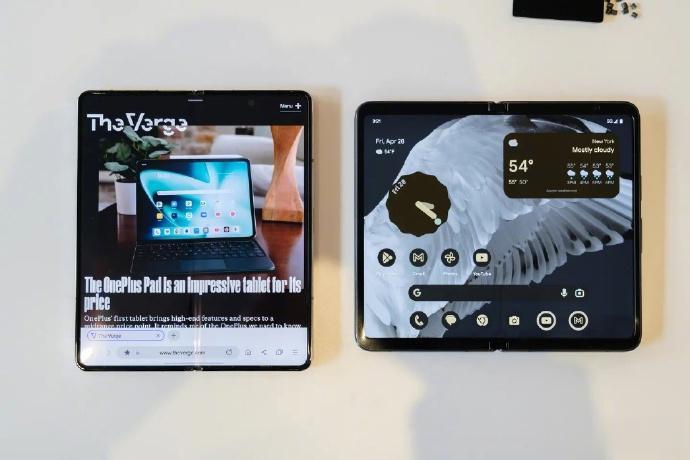 谷歌首款折叠屏手机Pixel Fold来了,这个大边框真是一言难尽,价格约12450元人民币起 核心配置上,搭载谷歌自研Tensor G2芯片,内屏5.8英寸,外屏7.6英寸,均支持 120Hz 刷新率,后置 4800 万像素的主摄 + 1080 万超广角 + 1080 五倍长焦三摄,重量超半斤,达283g…你们觉得这手机在国内能值多少钱?