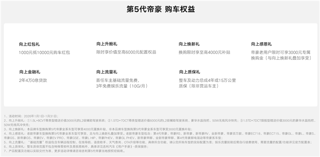 6.59 万元起的限时售价,让第五代帝豪将 B 级车水准的产品力带入主流消费区间,为消费者带来更优质的出行体验。
