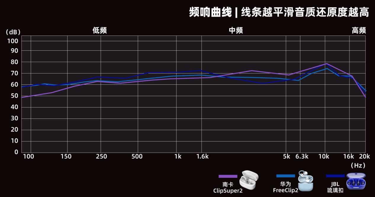 市面上不少耳夹耳机的音质都有夸大宣传的情况,为了给出公允的结论,我们借助专业音频分析仪,对三款耳机的三频表现进行实测,从而判断它们的真实音质水准。