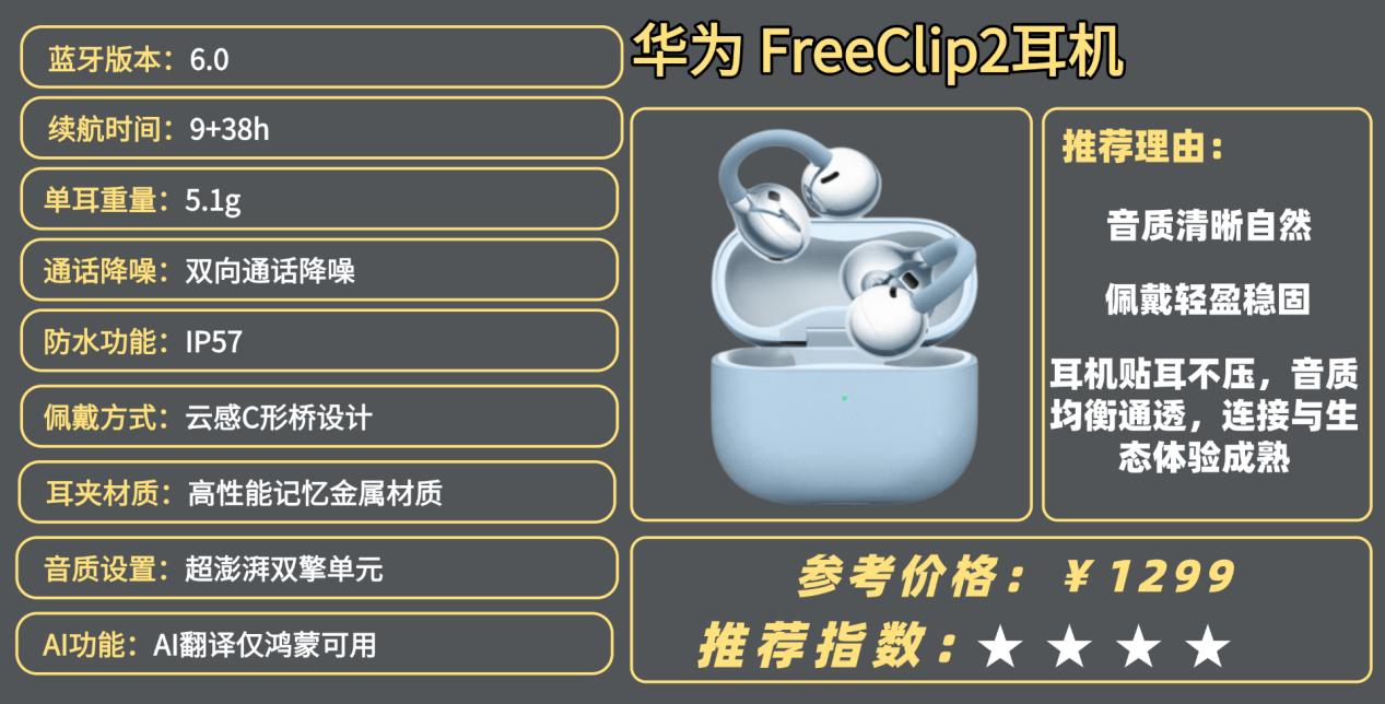 华为FreeClip2:生态与AI体验成熟,适合鸿蒙用户的日常通勤选择;