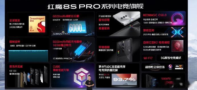 系列详细配置: - 性能:首发第二代骁龙8+领先版,最高24GB+1T超大运存组合、满血版LPDDR5X+UFS4.0; - 屏幕:第4代UDC全面超竞屏; - 拍照:5000万超感光三摄,1600万屏下前摄; - 续航:165W快充,14分钟充满100%,5000mAh同档电池充电最快; - 其他:高能低耗,3.5mm耳机孔+3麦克风系统等。