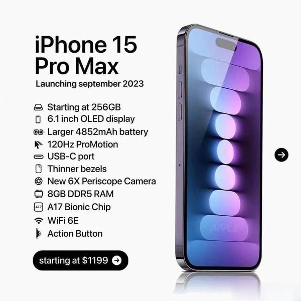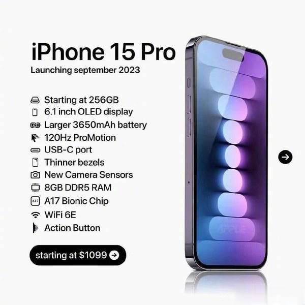 外媒曝光了苹果iPhone 15全系机型配置和价格:标准版128GB起步,Pro版256GB起步,全息灵动岛+ Type-C接口,折合成人民币的价格如下 iPhone 15 5799¥ iPhone 15 Plus 6499¥ iPhone 15 Pro 7899¥ iPhone 15 Pro Max 8599¥ 你今年会考虑入手iPhone 15吗?