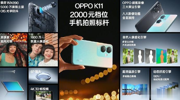 OPPO K11最大的亮点就是旗舰级的影像能力,硬件上采用了索尼IMX890+OIS光学防抖,成为2000元价位的最强影像配置;软件下放了OPPO旗舰影像引擎,在自然人像虚化引擎、自然人像虚化引擎和超清画质引擎的加持下,轻松抓住精彩瞬间,大片随心出