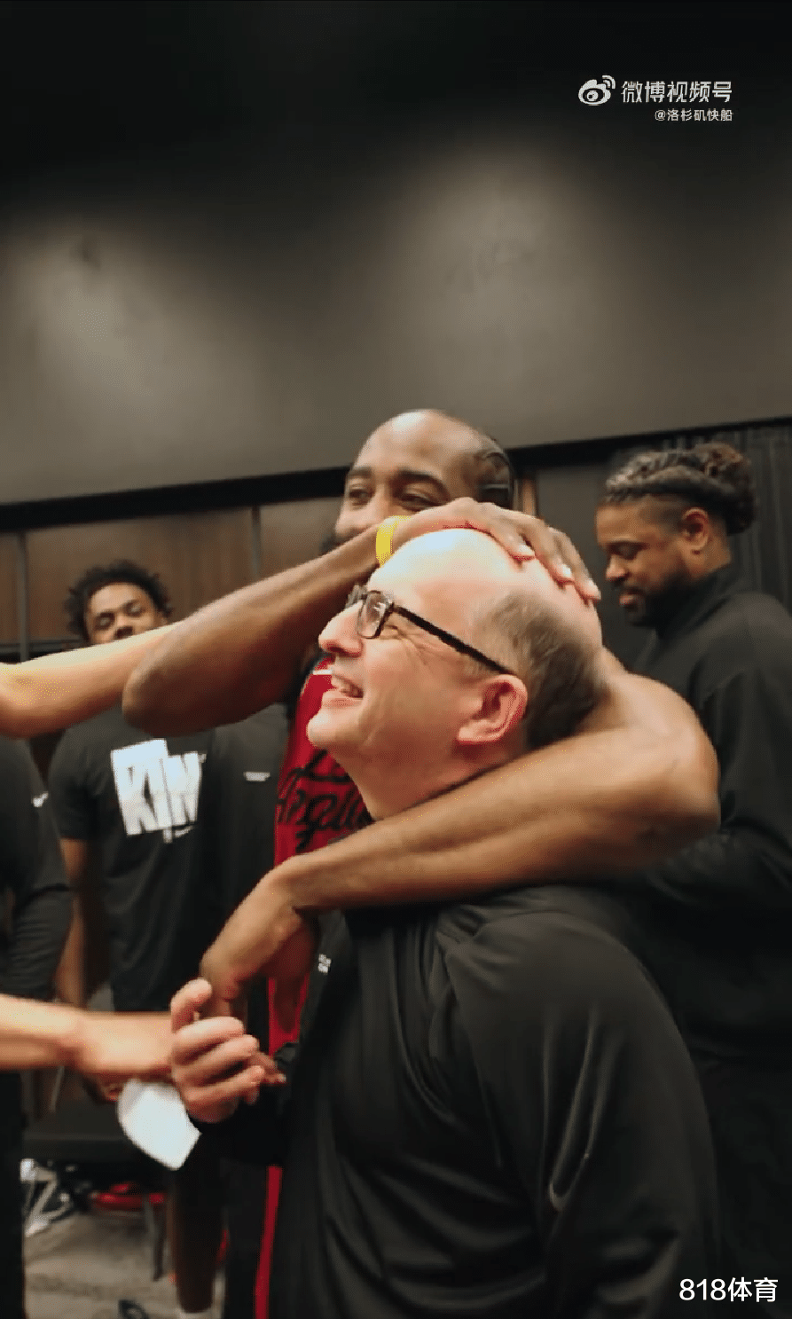 年轻队员带头唱起了生日歌,而哈登给范大爷来了个摸头杀,范甘迪似乎不在意。
