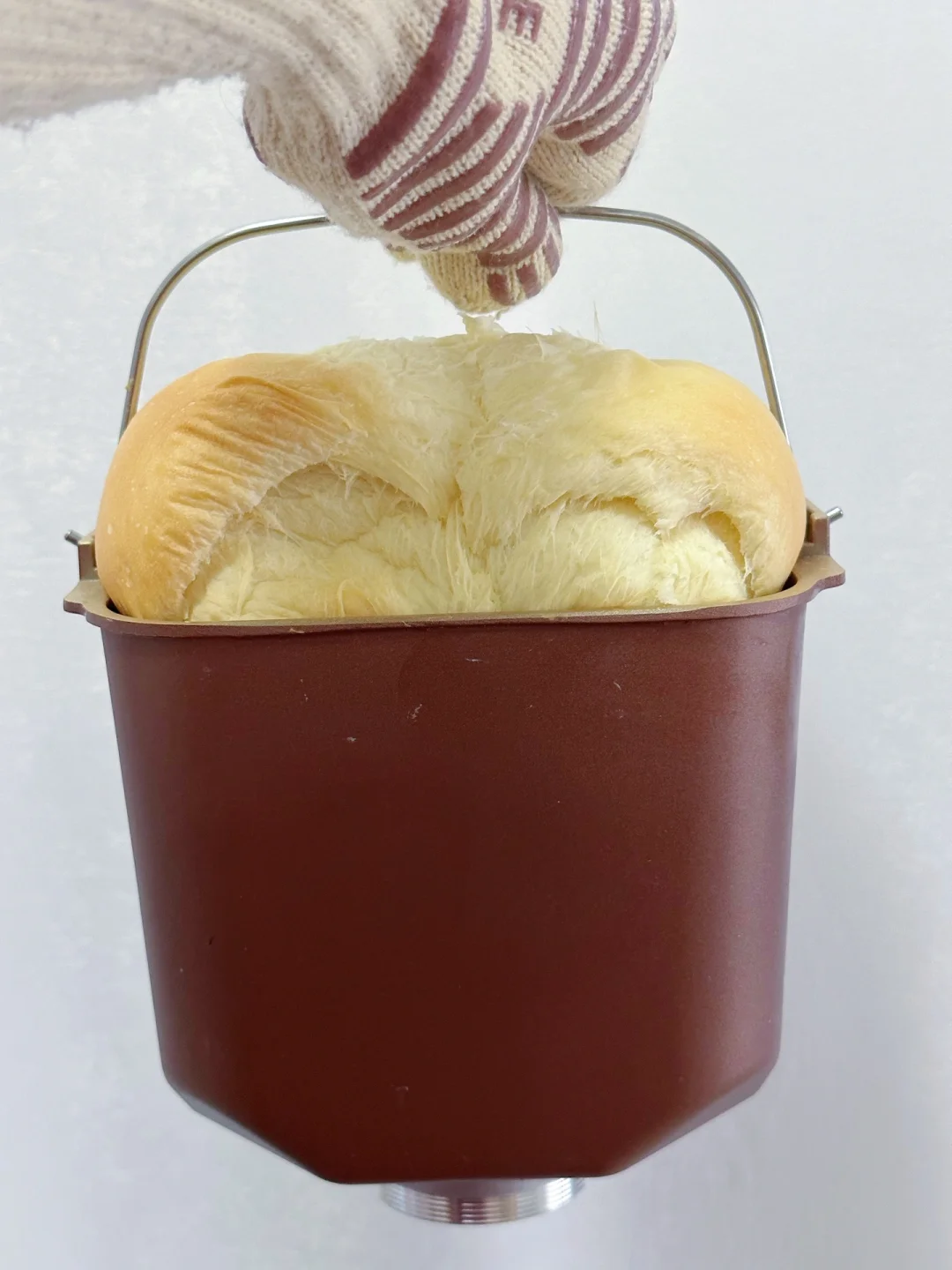 时间到后取出面包桶,将吐司置于晾网上晾凉即可。