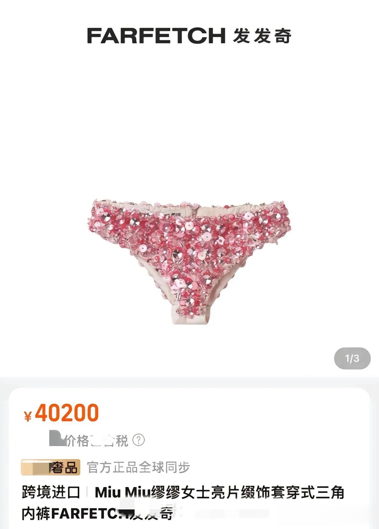 MiuMiu一条亮片内裤4万多引起热议,众多明星代言,咱就说这内裤内穿看着就扎人,感觉不舒服,外穿咱也不好意思穿个内裤就出门啊!到海边穿比基尼,这个内裤也没有防水功能吧!4万多是真钻么?奢侈品到底贵在哪里?好在哪里?