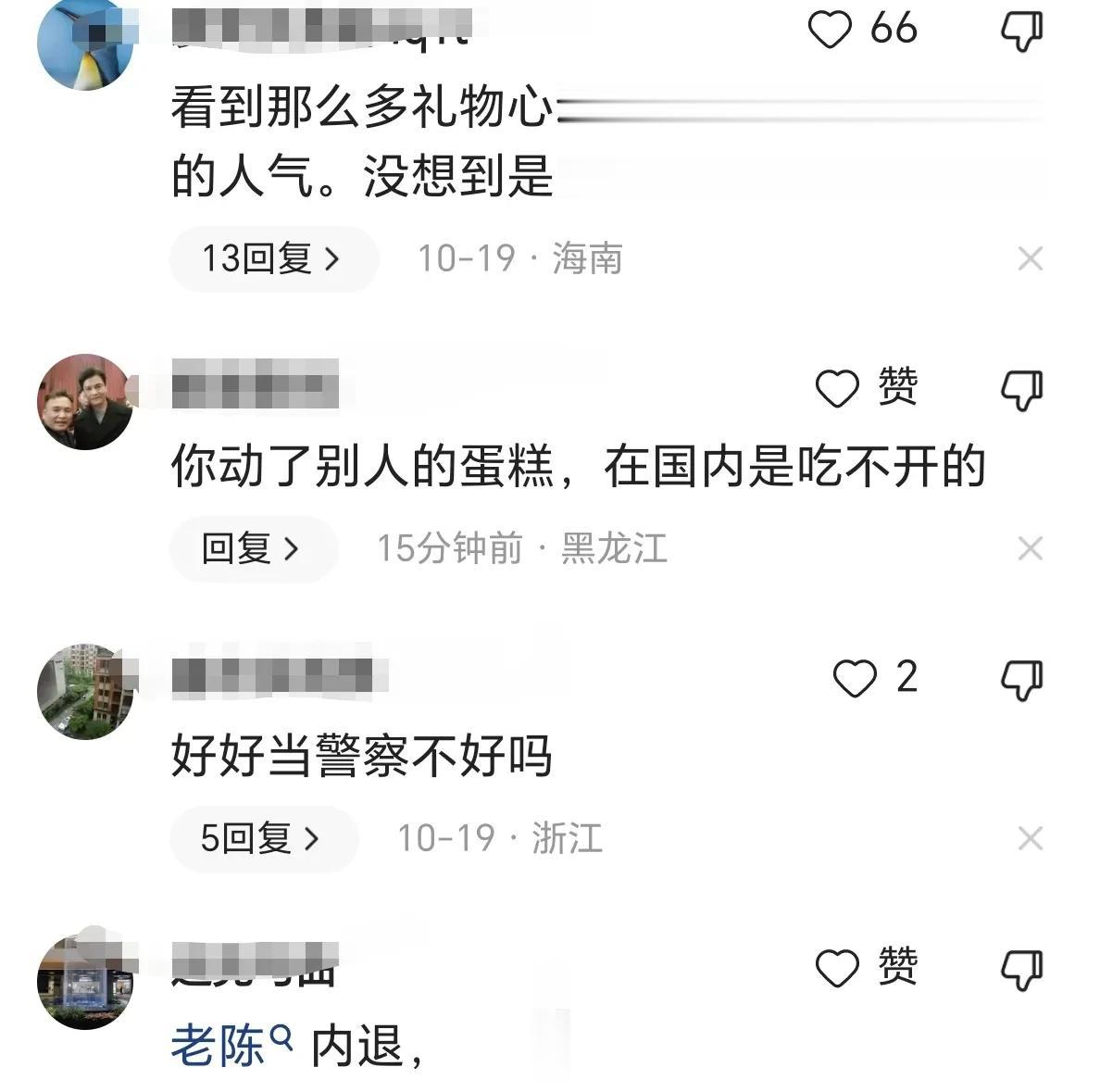 唐小墨 16 2023-10-23 10:36 错把平台当自己本事。最开始直播人气高是因为你的身份是人民警察,现在不过是一个想赚钱的网红罢了。 侯哥 回复 10-23 15:46 但是已经赚了警察一辈子赚不到的钱了 两个字 回复 10-23 18:17 捐了一百万