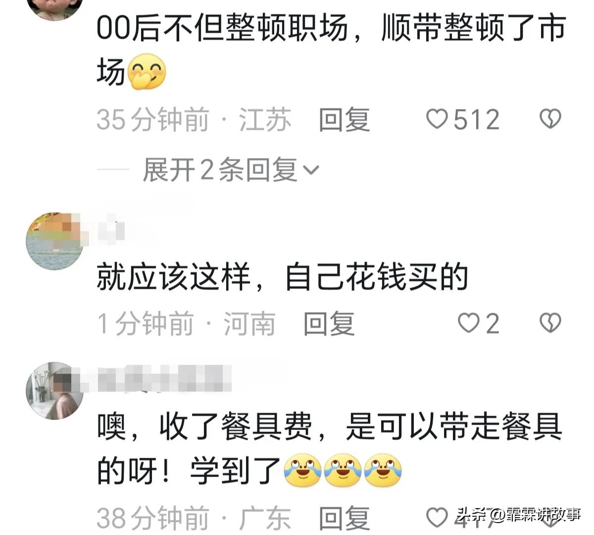 大学生们去饭店吃饭,餐具收清洗消毒费,临走的时候,大学生们把收费的餐具都带走了。 网友:00后不但整顿职场,还整顿市场,自己花钱买的应该的。 你认可网友的评价么?觉得学生们拿走餐具做的对吗?