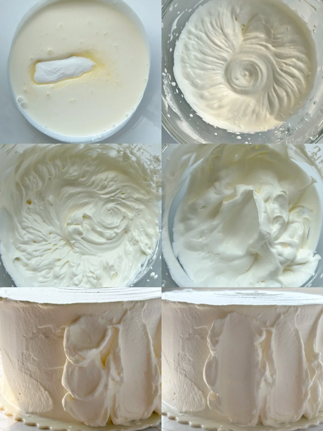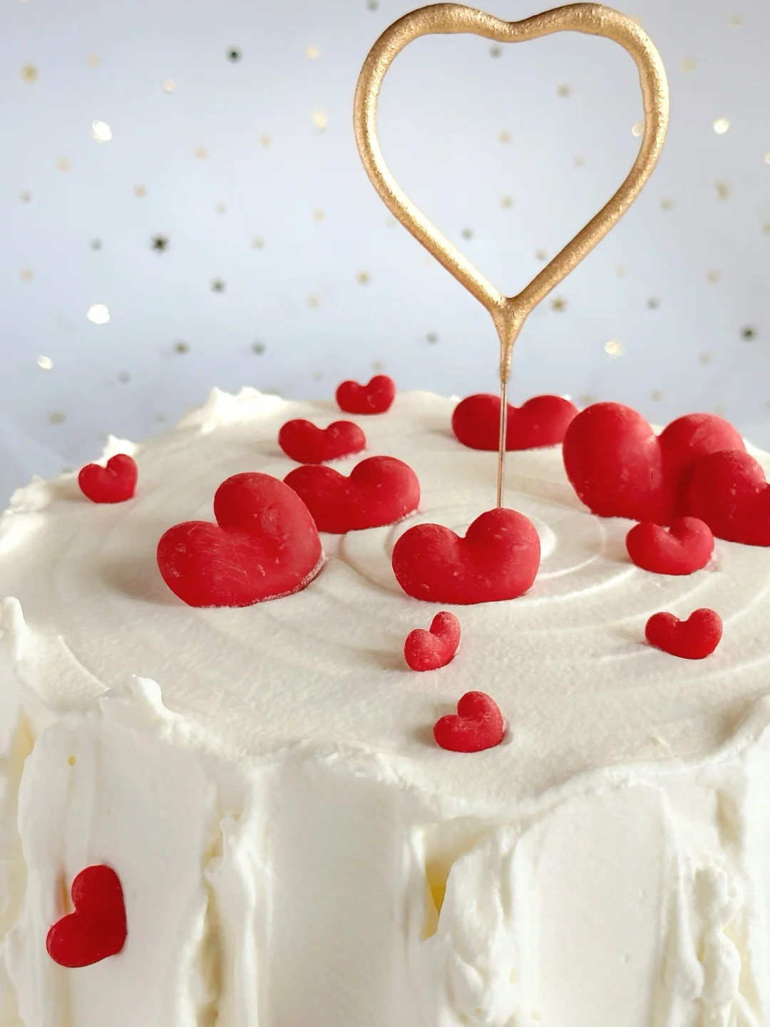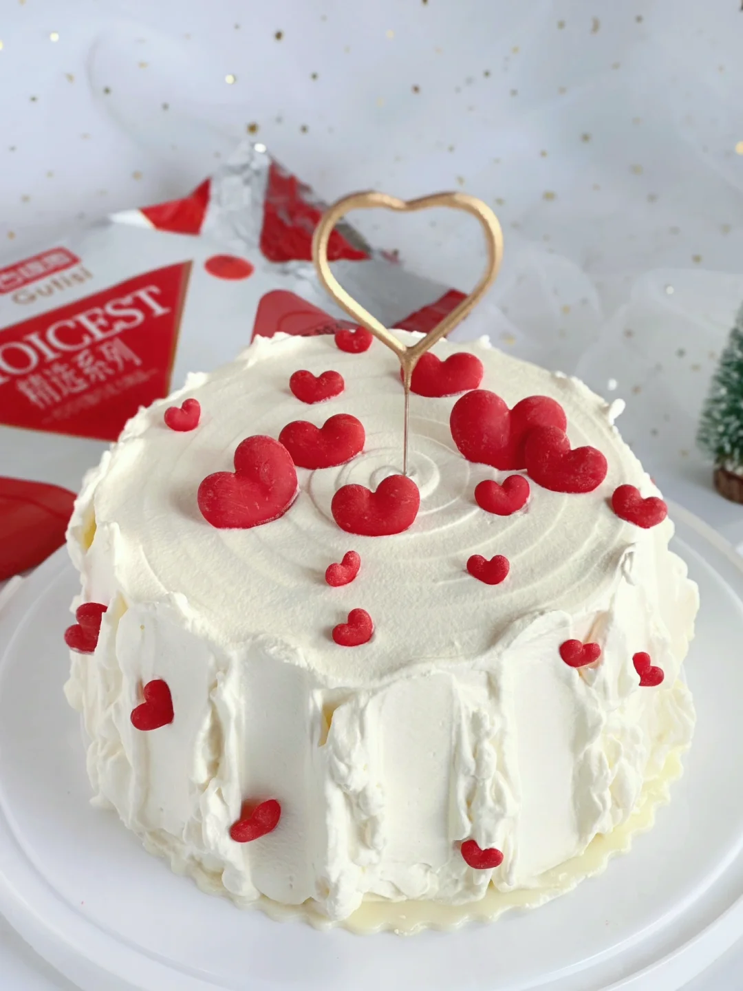 2️⃣抹面奶油➕糖打至7成发,抹面剩余部分用小刮刀将四周抹上奶油刮出喜欢的样子,再用提前做好的爱心巧克力装饰即可
