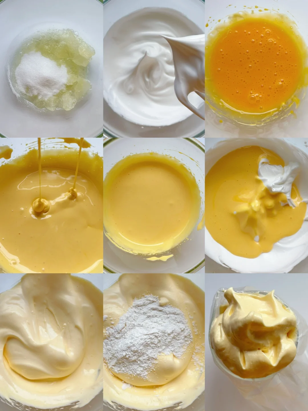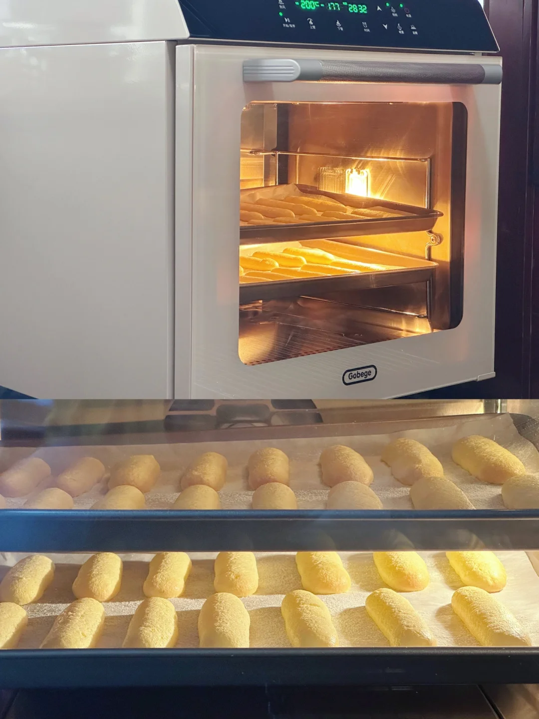 每年必做的提拉米苏~当然手指饼干也是必做!自己做的当然更香呀! 💢食材:鸡蛋3个,低筋面粉55g,细砂糖共55g,柠檬汁(白醋)几滴,糖粉适量。 🔥做法🔥 🎈蛋清放入冰箱冷冻至结一层冰渣取出,加入柠檬汁,50g细砂糖分三次加入,打发至硬性发泡(直立小尖角)。 🎈蛋黄中加入5g细砂糖打发至蛋黄变得浓稠,倒入蛋白霜中,翻拌均匀。 🎈筛入低粉,翻拌至看不到干粉即可,装入裱花袋,挤成长条在铺好的油纸的烤盘上,表面筛一层糖粉。 🎈放入预热好的80s烤箱,风炉模式180度,烘烤12分钟左右。