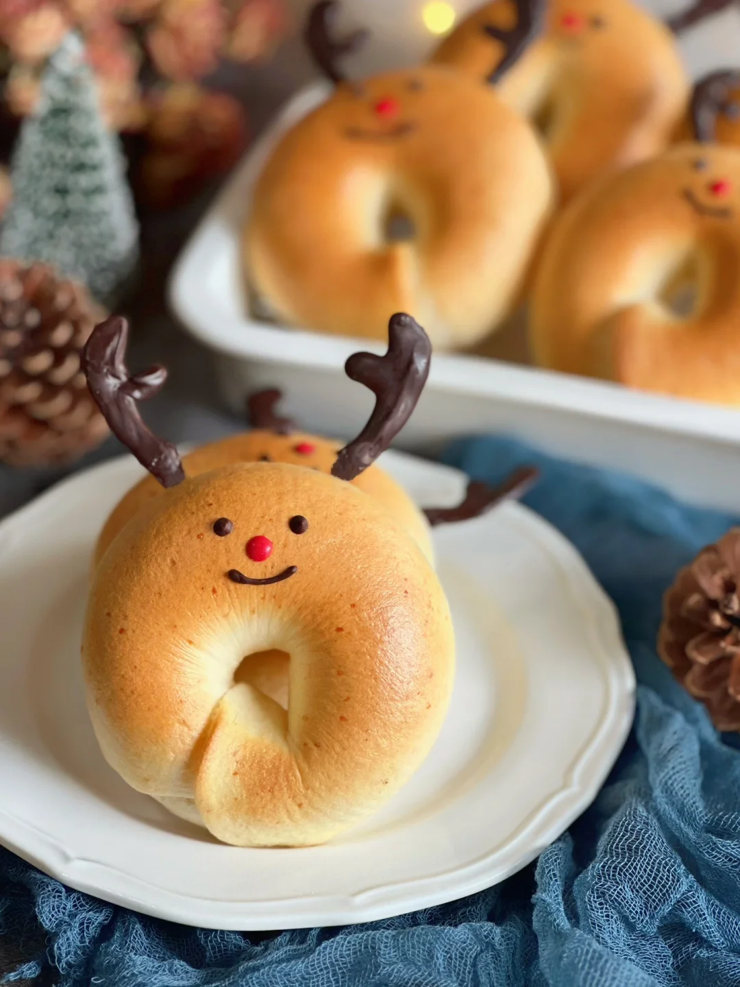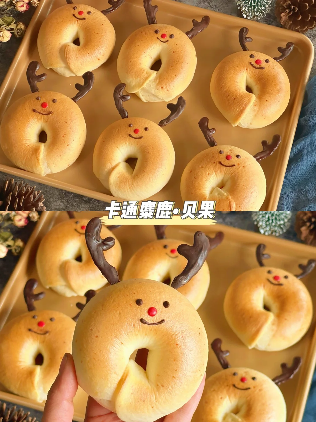 圣诞节就快到了,这个超可爱的贝果一定要做起来呀!我家一岁多的小妹看到这个小鹿贝果,一直喊“看看~娃娃……乖!”哈哈哈~拿到手里抱着……真的是当成了玩具了!