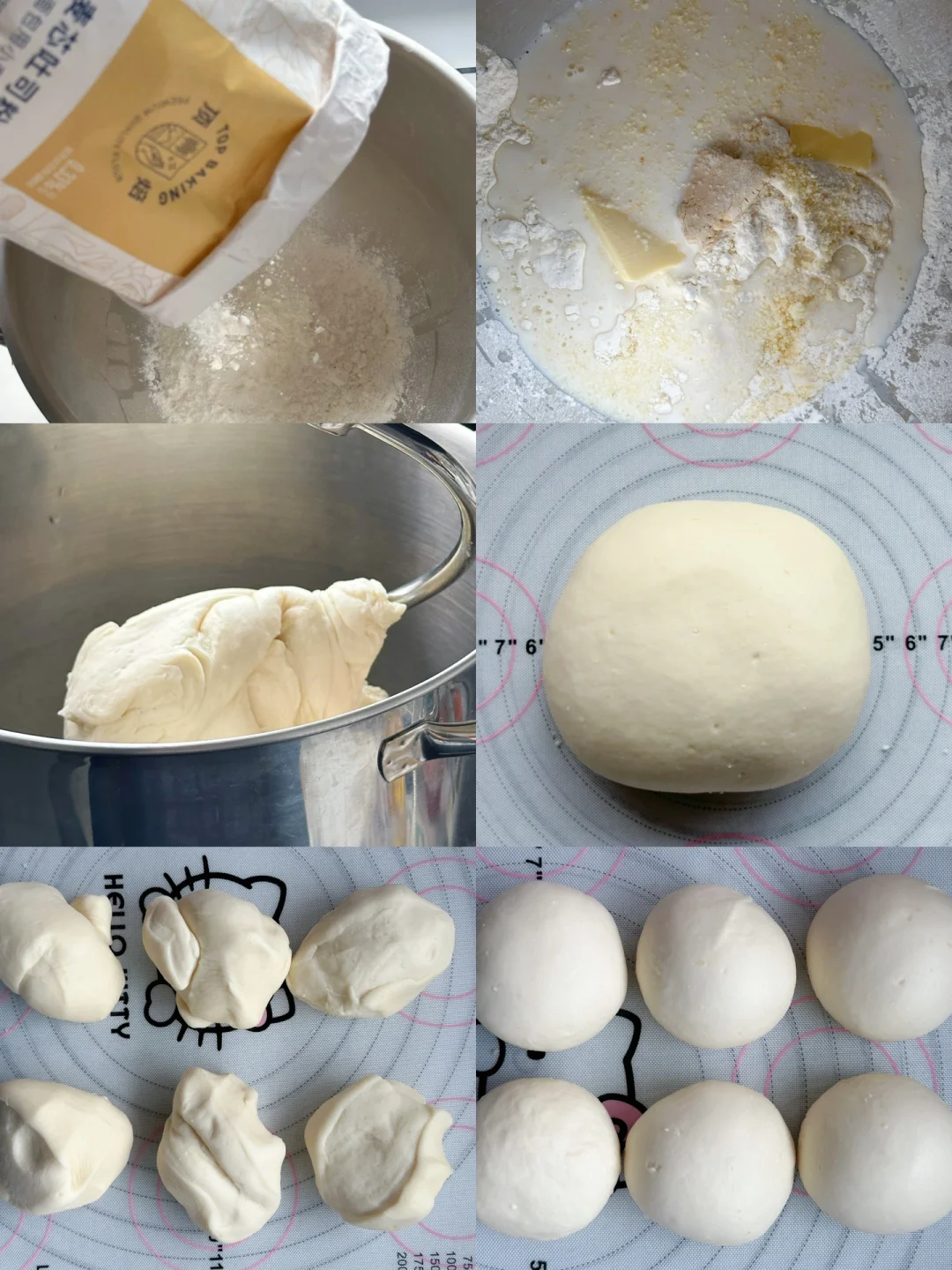 2️⃣揉好的面团直接分割成6份,滚圆,盖保鲜膜松弛20分钟。