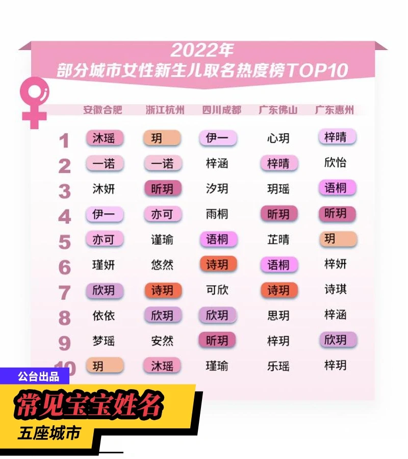 2022新生儿最常见的姓名