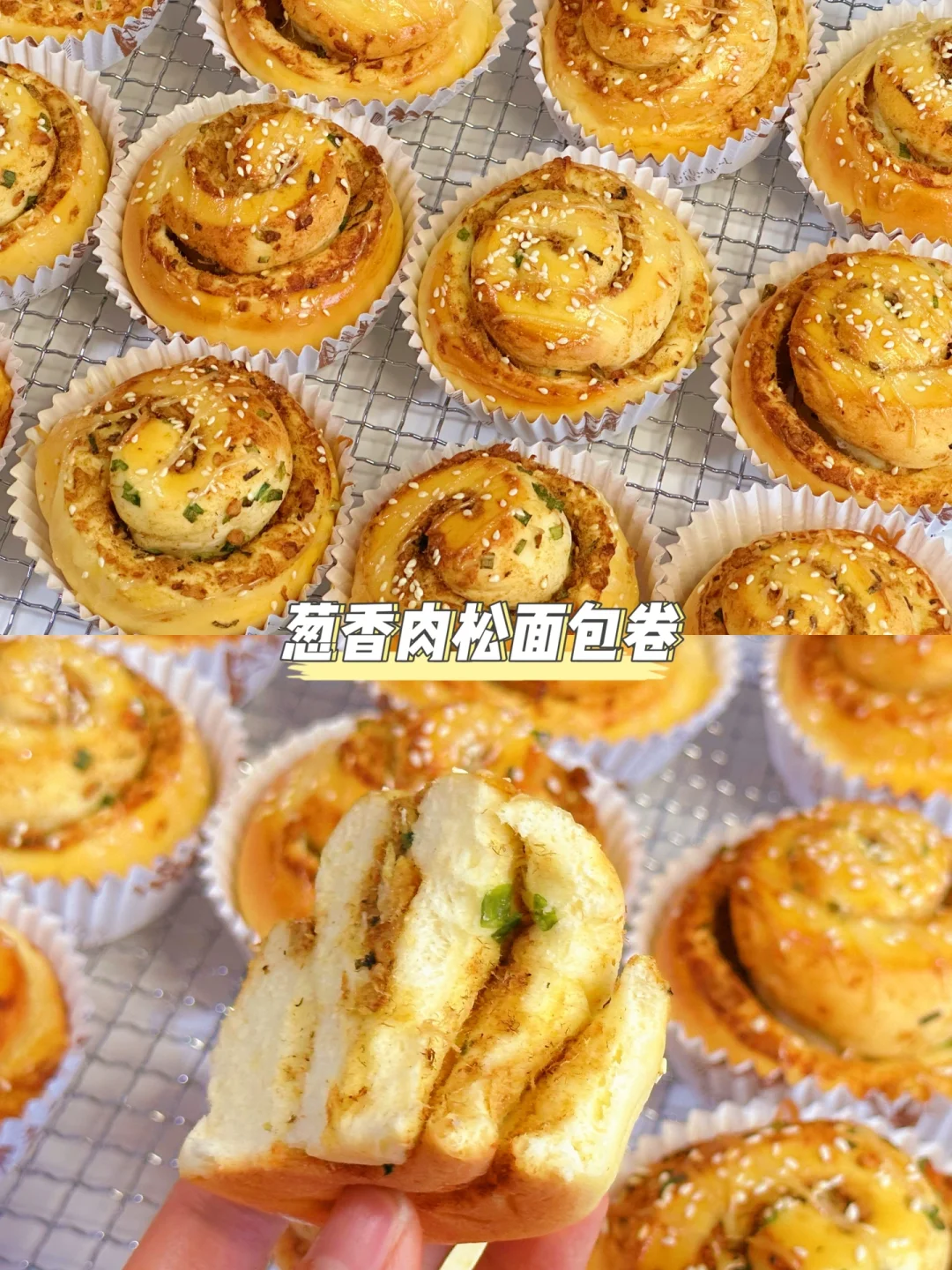 这款葱香肉松面包卷真的香迷糊了!就是上次买的肉松颜色不好看,黑黢黢的!不是一坨就是成渣渣~除了影响外观,没其他毛病,面包真的是巨好吃~