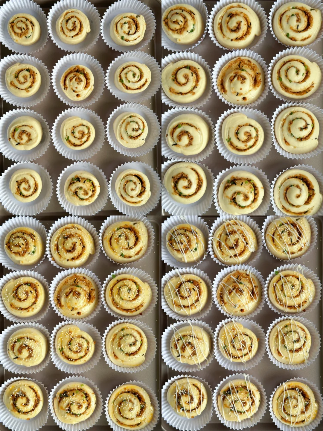 🔺全部做好放发酵箱温度32度,湿度80%发酵至1.5-2倍大,发酵好的面团表面刷一层蛋液,撒白芝麻,挤上沙拉酱。