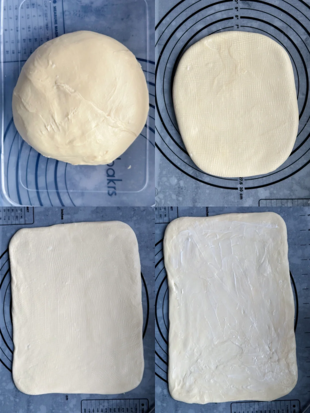 🔹主面团:高筋粉335g,低筋粉65g,盐5g,糖50g,奶粉16g,耐高糖酵母4g,全蛋液40g,牛奶265g,黄油30g,烫种80g