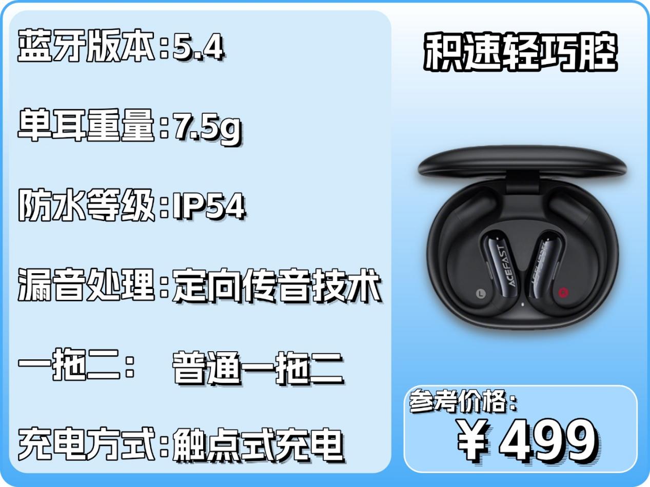 耳机凭借 7.5 克的超轻重量,搭配轻羽式耳挂和液态硅胶材质,长久佩戴仿若无物。20×8mm 的三磁发声单元结合 AELC 数字增强技术,人声表现细腻丰富,日常听音乐或通话声音清晰明澈。单耳续航达 6 小时,配合充电仓可额外提供 25 小时电量支持,轻松应对全天通勤需求。双麦 ENC 降噪有效隔绝环境噪音,IP54防水等级可抵御运动中的汗水侵蚀,体验不错,刚需党可以考虑