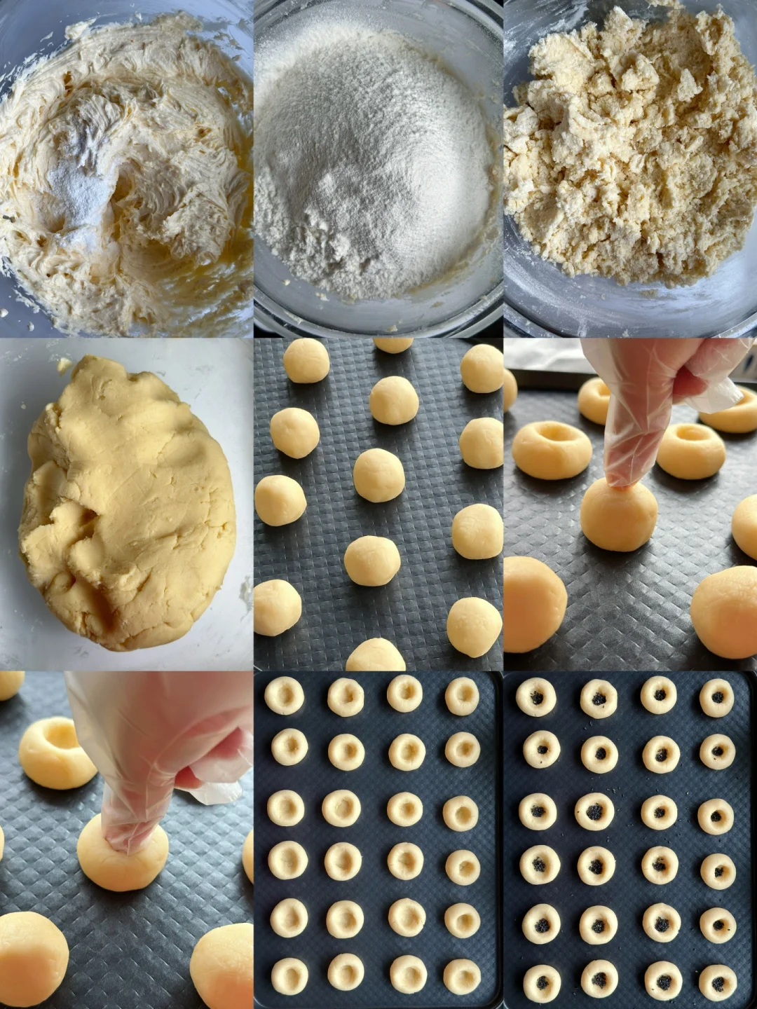 🔸筛入面粉后一定不要过度揉面团,揉捏过度影响成品开裂效果。