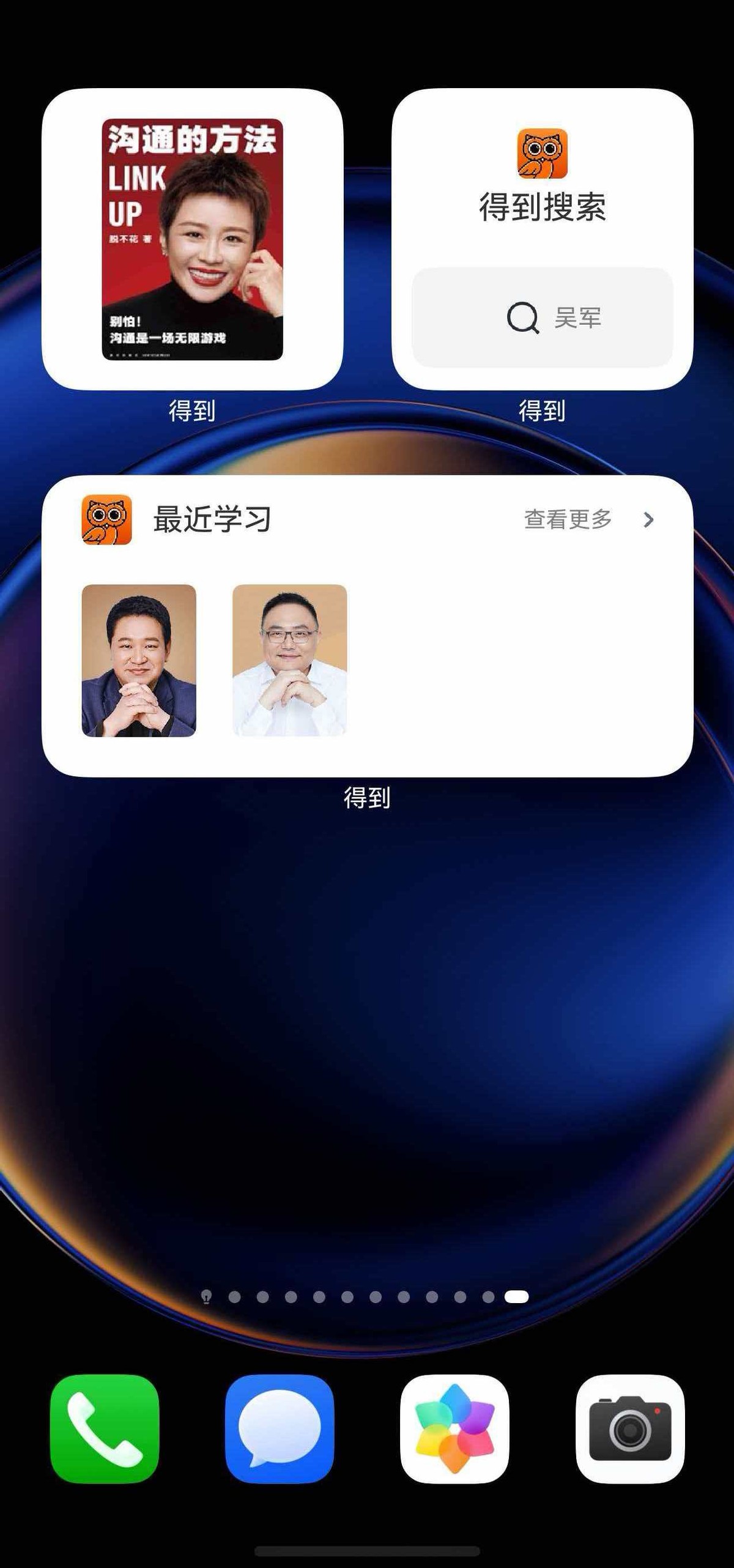 现在我的桌面C位,正是鸿蒙版得到的“正在阅读”卡片!以前想接着看的书、接着听的课,热情总被层层点开的步骤慢慢降温,现在解锁手机就能看到它的封面,点一下接着激情澎湃地读。“最近学习”卡片也安排上了,要学啥、看啥一目了然。如果有需要的话还能加个“搜索”卡片,点进去就可以直接搜书、搜播客。