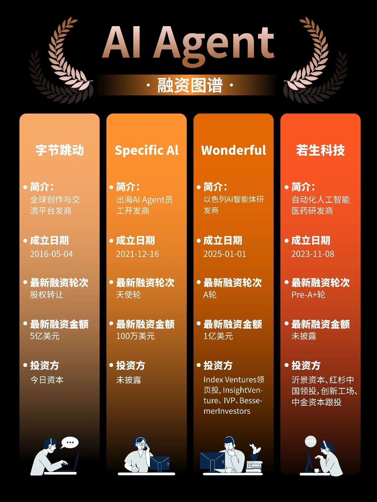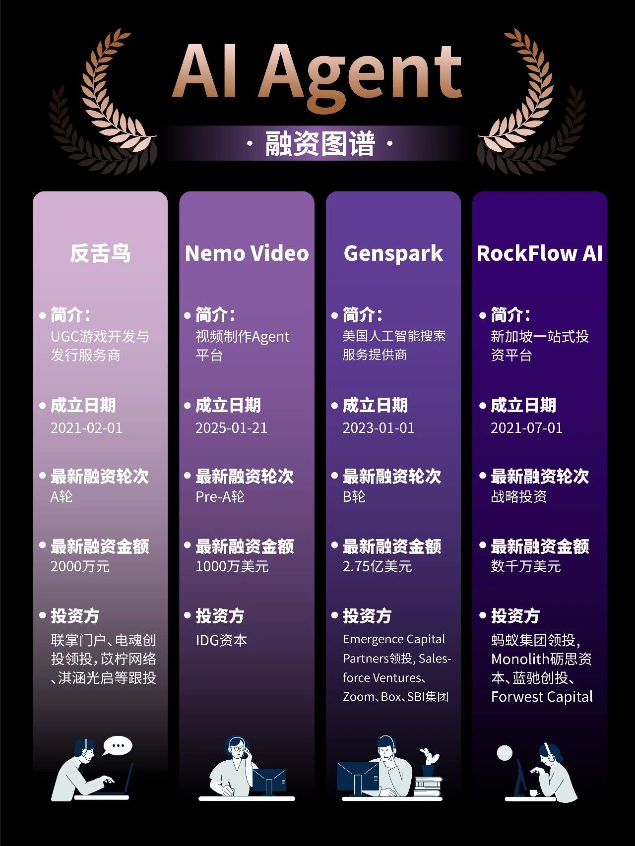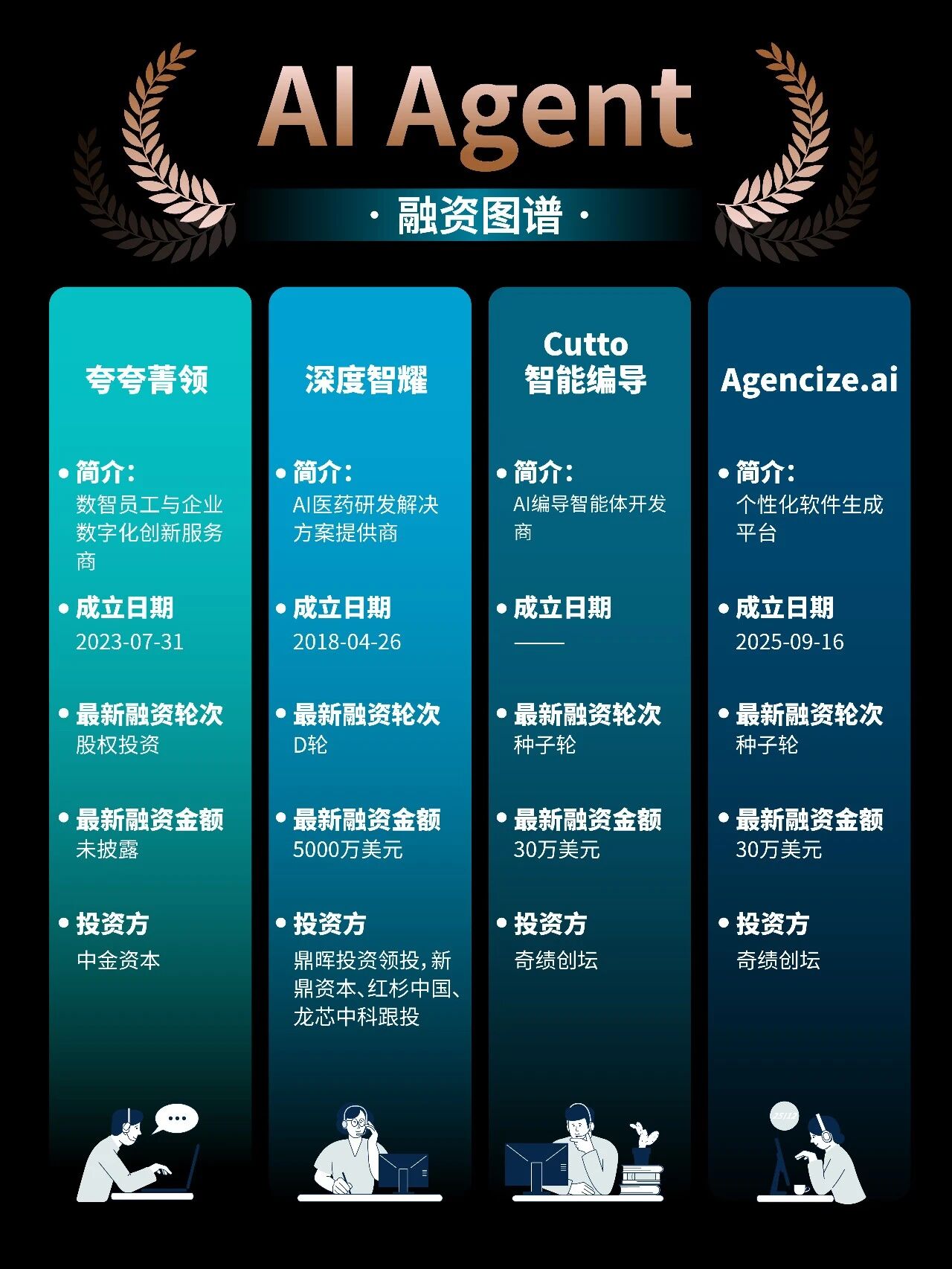 AI Agent(人工智能体),正从概念变成真实生意。AI Agent超越了传统意义上仅能响应指令的工具,更像是一位能够主动规划、调用资源、完成任务的“智能助手”或“数字员工”。AI Agent已在诸多领域展现出巨大潜力。2025年,全球AI Agent领域融资规模突破150亿元,仅上半年融资事件达23起,披露金额超80亿元。目前, AI Agent 相关公司覆盖通用大模型、企业服务、医疗、内容生成、开发工具等多个方向。从中国来看,北京、上海、深圳依然是 AI Agent 创业最密集的三大核心城市,背后对应的是算力、模型、产业资源和资本的集中度优势。其中,面壁智能、MiniMax 等头部公司,已进入股权投资、战略投资阶段,融资规模动辄数亿。从赛道结构看,医疗 Agent、内容与编程类 Agent 成为热门方向。更值得注意的是,投资方结构的变化。除了传统财务投资人,产业资本、上市公司、地方国资频繁出现,说明 AI Agent 已被视为中长期产业级机会,而非短期概念炒作。(本文不构成投资建议)