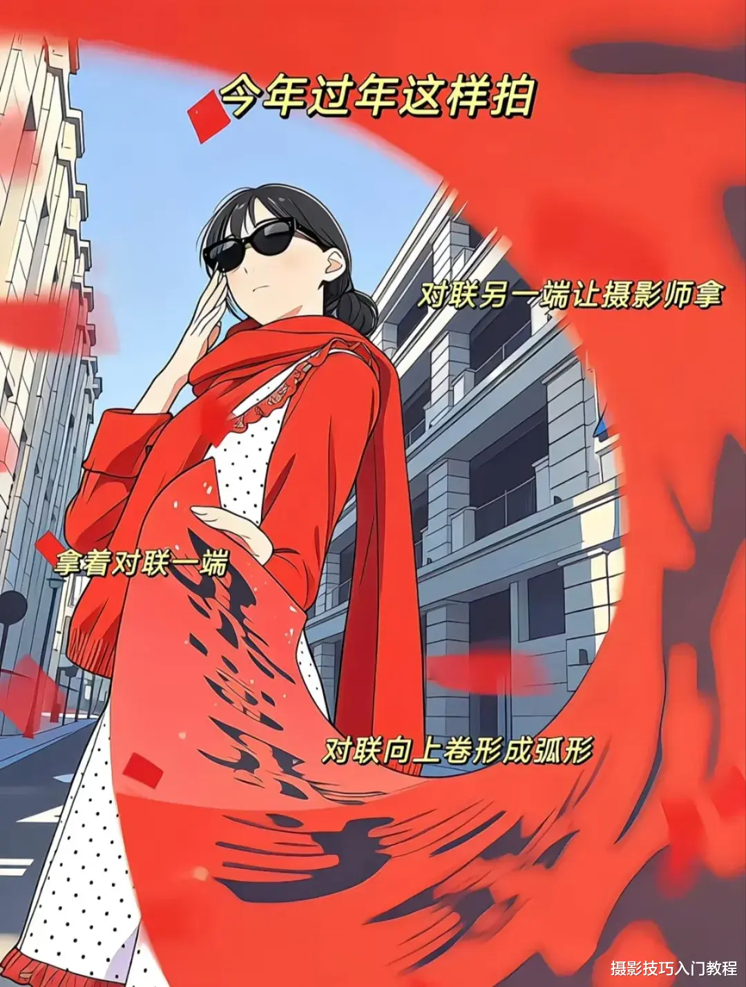 今天给大家分享一个手拿春联拍照姿势