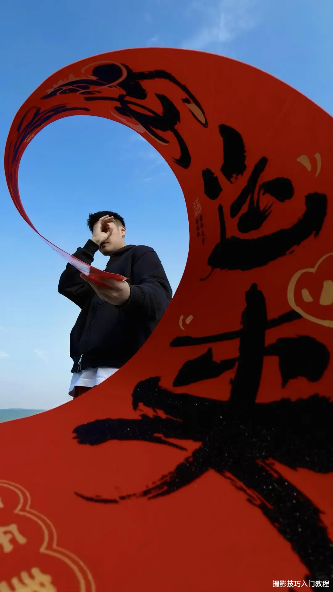 ①模特手拿春联,另一端由摄影师拿着