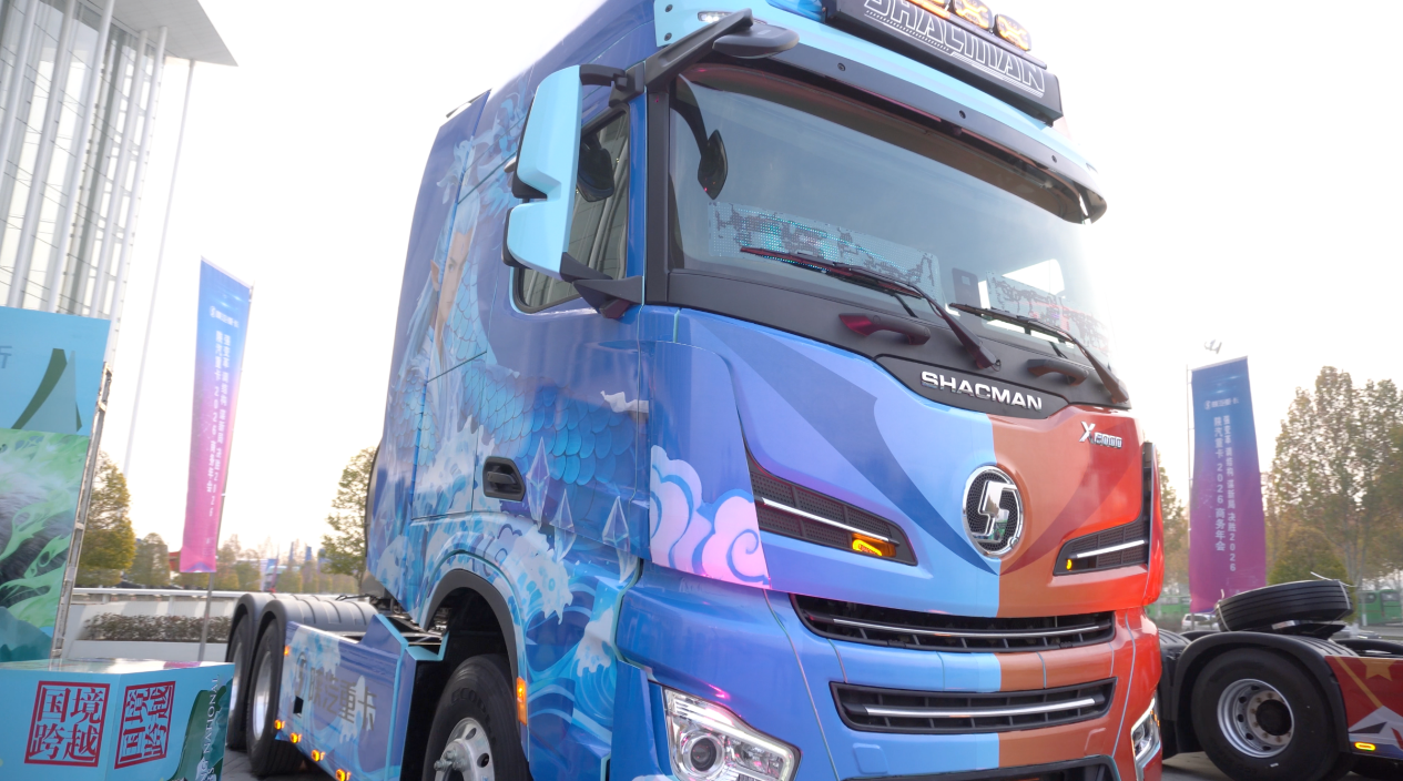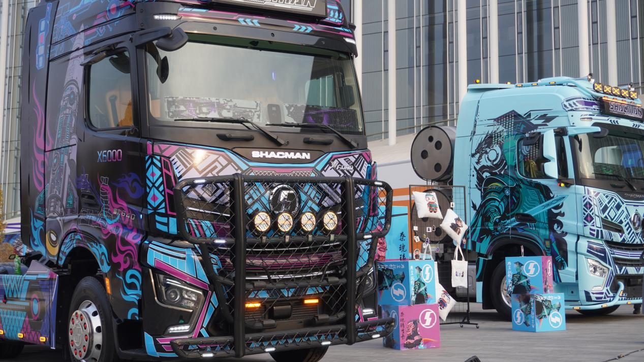 迎宾通道上,摆放着有些“格格不入”的重卡,他们色彩艳丽、个性鲜明、光鲜夺目,九三阅兵、哪吒等身上的涂装述说着中国的故事,让重卡在工具属性之外,更是文化的传播平台。