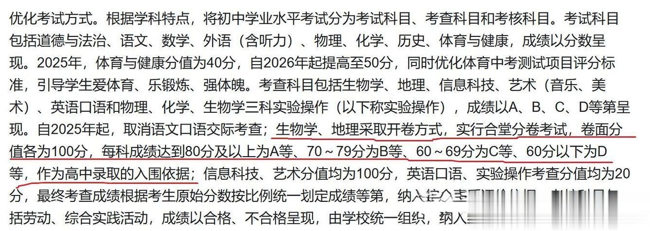 “生物地理不计入中考总分了?”最近,多地家长群炸开了锅!原本作为中考“必考科目”的生物、地理,突然被移出计分范围,改用等级评价或“学完即考”[1][2]。这一调整,让无数家长慌了神:“孩子白学了?”“会影响升学吗?”今天,咱们就扒一扒这背后的真相!