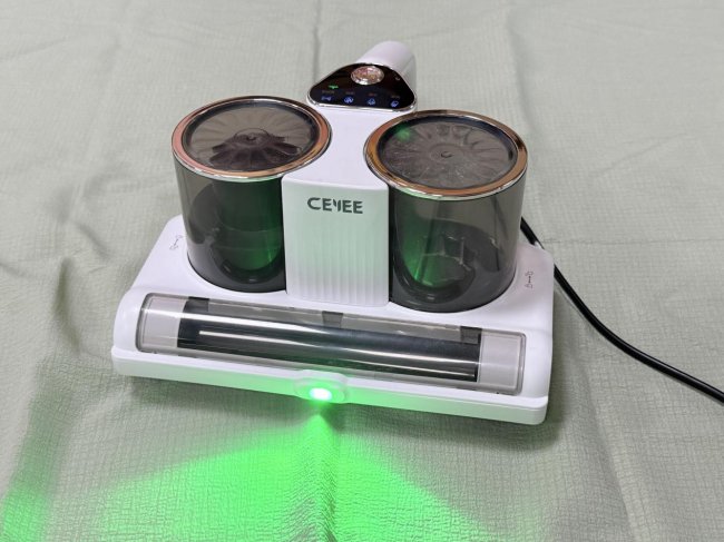 实测表现:作为长期使用无线除螨仪的用户,这款希亦V1彻底解决了我之前遇到的吸力不够、续航不足的难题。实际使用时,高频双滚刷拍打力度充足,能轻松震出被褥深层的螨虫、虫卵和灰尘,15000Pa吸力能一次性吸净,实测除螨率达100%。内置的UVC深紫外杀菌灯杀菌率99.99%,智能感应设计很贴心,人靠近就自动熄灭,有小孩和宠物也能放心用。