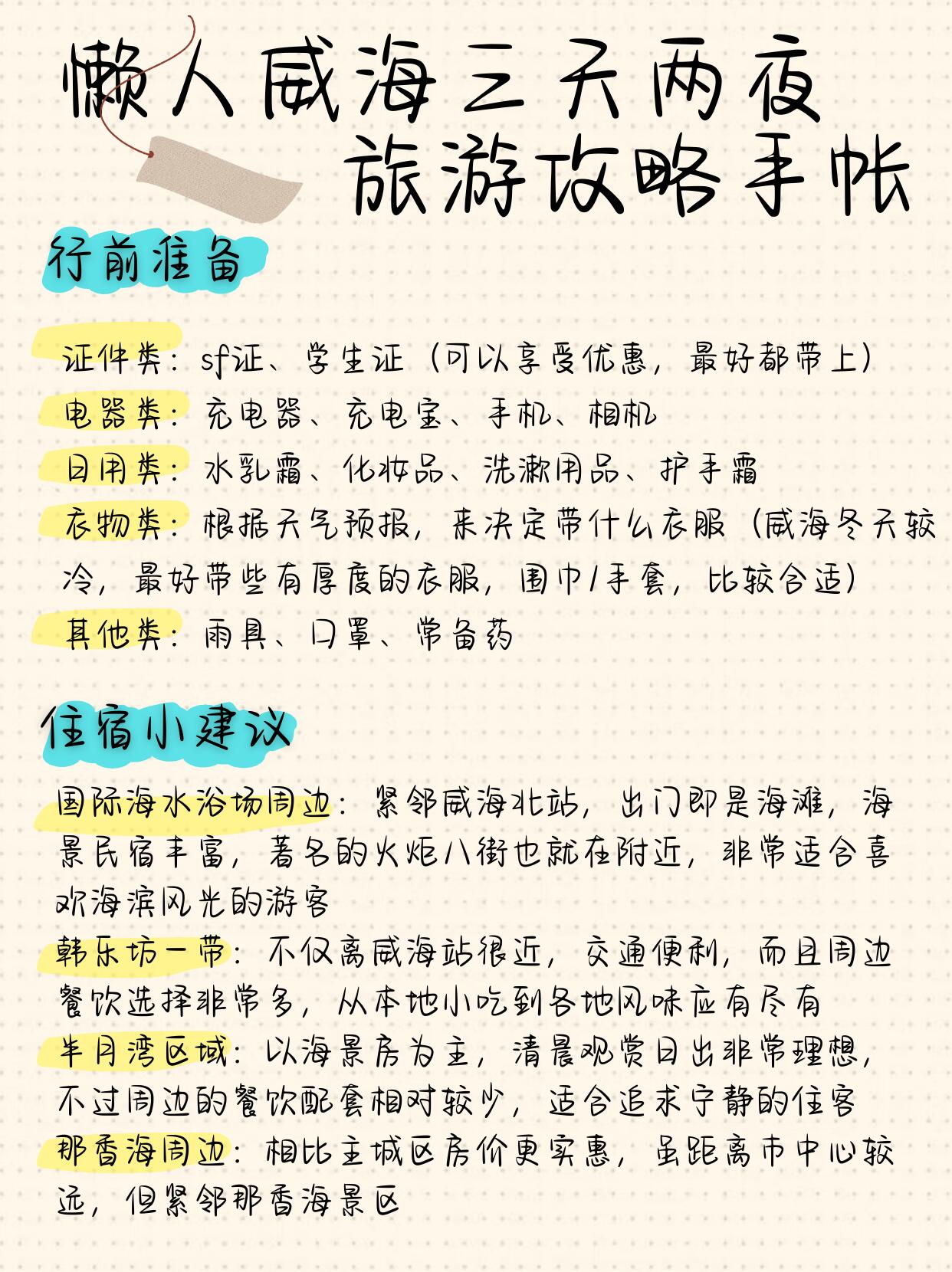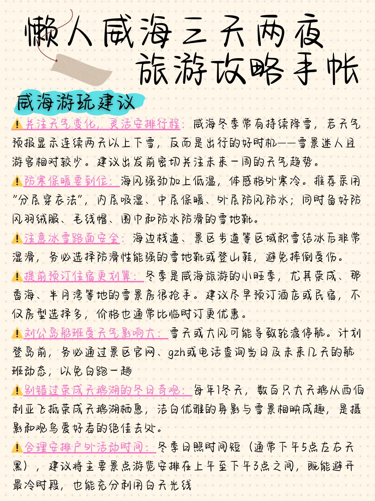 女大自用攻略,威海冬季三天两夜旅游手帐