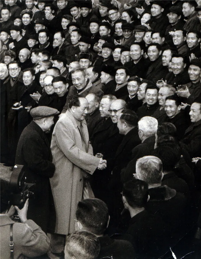 郑万钧与毛先生握手