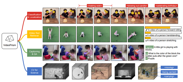 如果说在Gemini 1.0时期,周浩解决的是“怎么让AI认识到错误”,那么到了2024年,周浩作为核心贡献者参与的VideoPrism,它解决的就是“怎么让AI看懂视频”。
