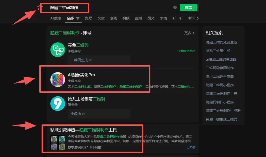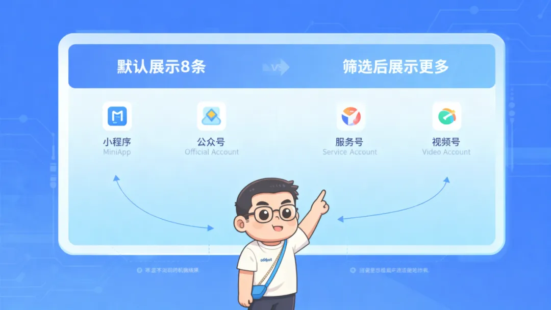 需要注意的是,「账号」场景下,默认展示的包括小程序、公众号、服务号、视频号4个类别。