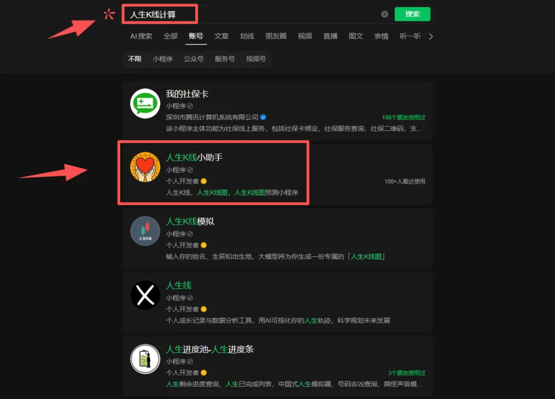 比如这个人生K线的小程序,在这种场景下,新出的词条就很有优势,并且因为信息传递的滞后性,会持续有长尾流量进入。