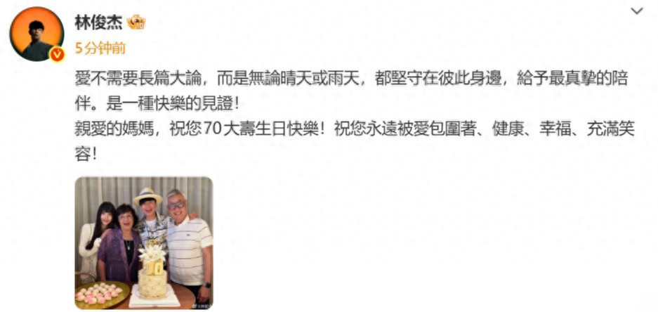而且这次同框也不是毫无预兆,自从去年12月JJ借着母亲70岁寿宴官宣恋情,七七亲昵依偎在林妈妈肩头的全家福曝光,彻底坐实关系并得到家人盖章后,两人就不用再藏藏掖掖。前几天还有人在新加坡艺术展偶遇他俩,穿黑色情侣装、戴同款口罩低调撒糖,JJ右手无名指上的戒指,还被网友扒出来引发“好事将近”的猜测,甜度就没断过线。