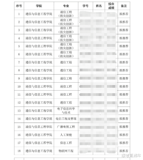 (西邮2026年应届部分推免名单 来源:西安邮电大学研究生院官网)