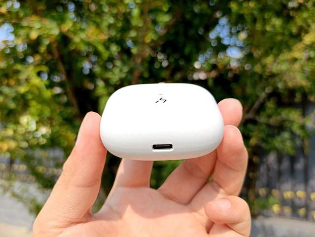哈氪拾光pro耳机充电仓正前方的logo上方有一个指示灯,可以显示电量和连接情况;充电盒背部有一个重置键,想要连接其他新机时,长按10秒即可重置;充电仓的下方是一个Type-C的充电口,与所有主流电子产品的充电线都可公用,非常方便。另外,这款耳机不仅可以有线快充,2小时左右充满,还支持无线充电。充电盒+耳机的电池容量是550mAh+,整体续航时间,足够满足一整天的使用需求。