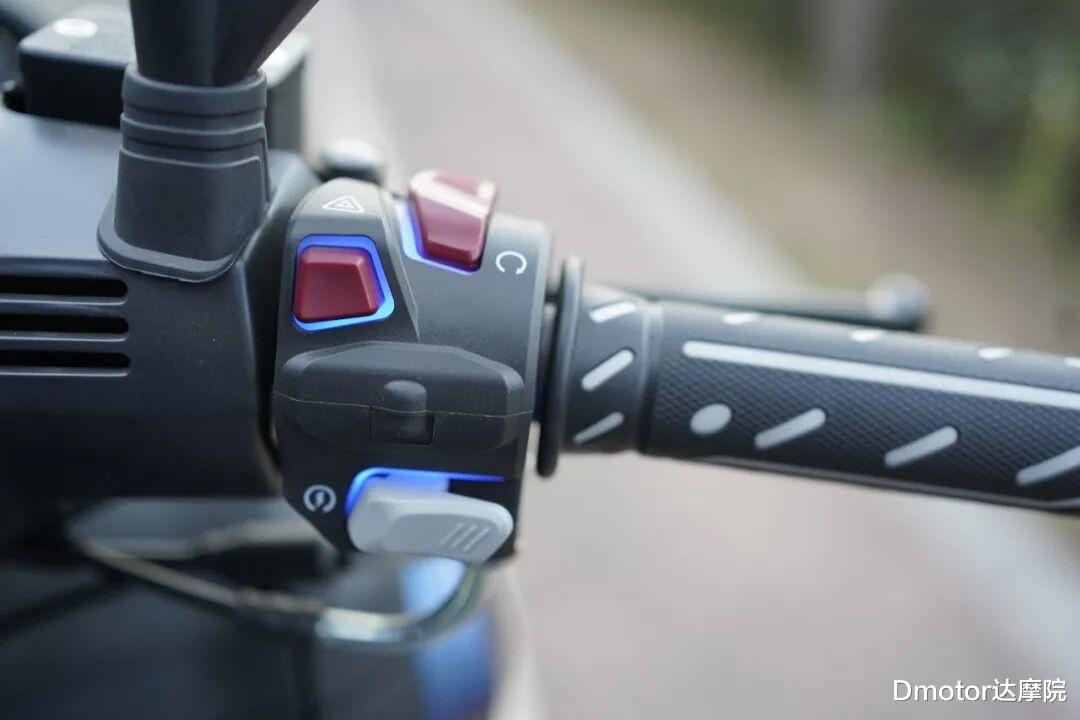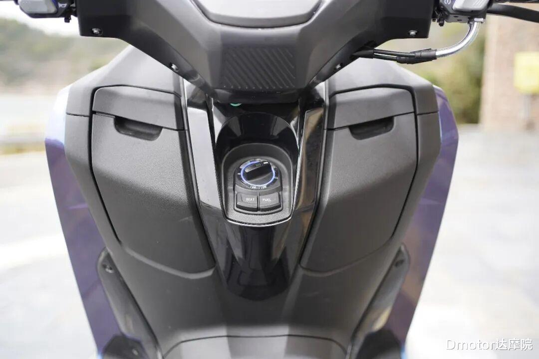而且从现场体验丝滑,风挡升降没有一丝拖沓感,而且风挡的高度也较高,在骑行的时候可以挡住胸颈位置的迎风。
