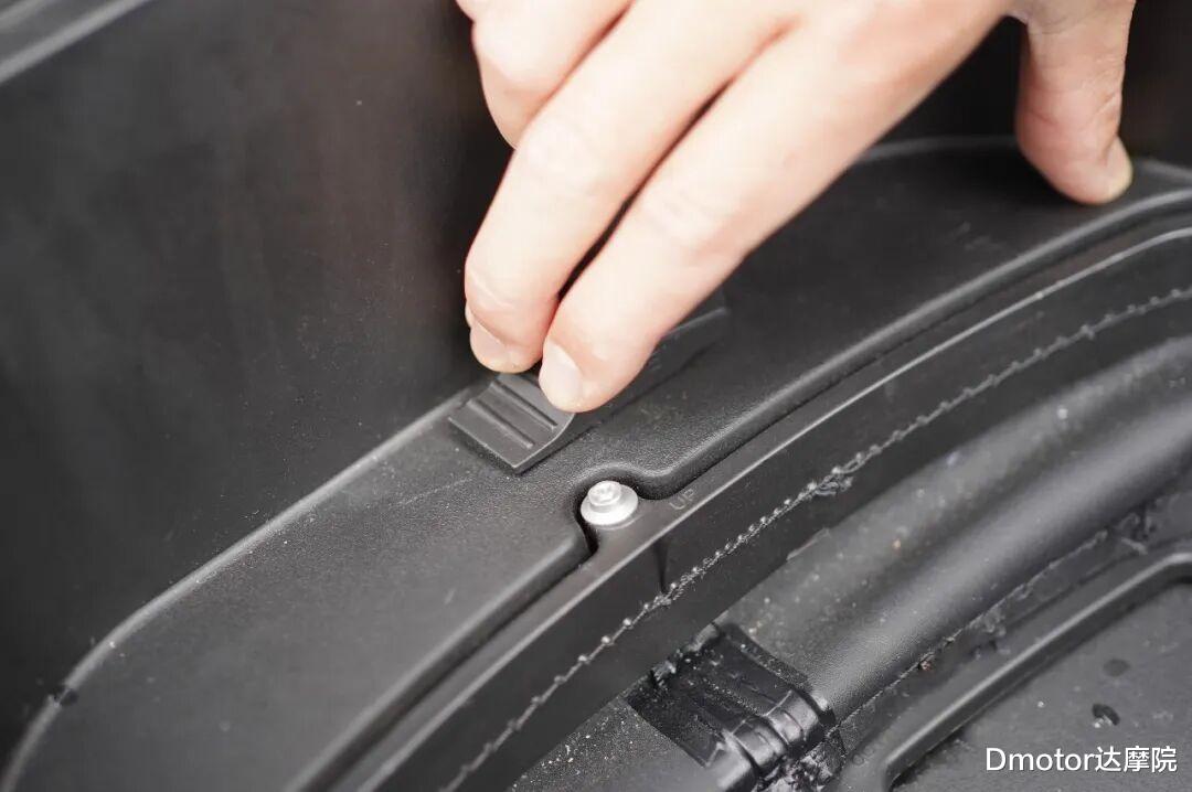 不过达摩院特别提醒的是,车子在扩展空间状态下是断电不能够着车,需要用手向上抽一下卡扣关闭拓展状态,车子才会通电着车。