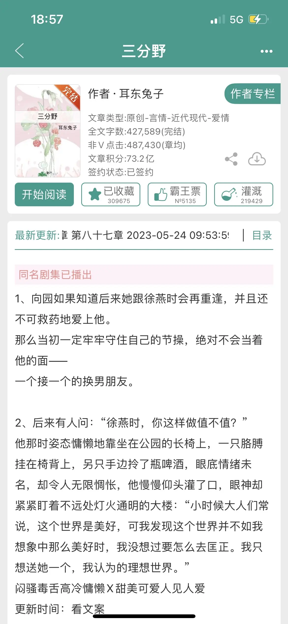 昨晚再看了遍三分野,这个神仙作者太绝了! 耳东兔子的文可以闭眼入!!