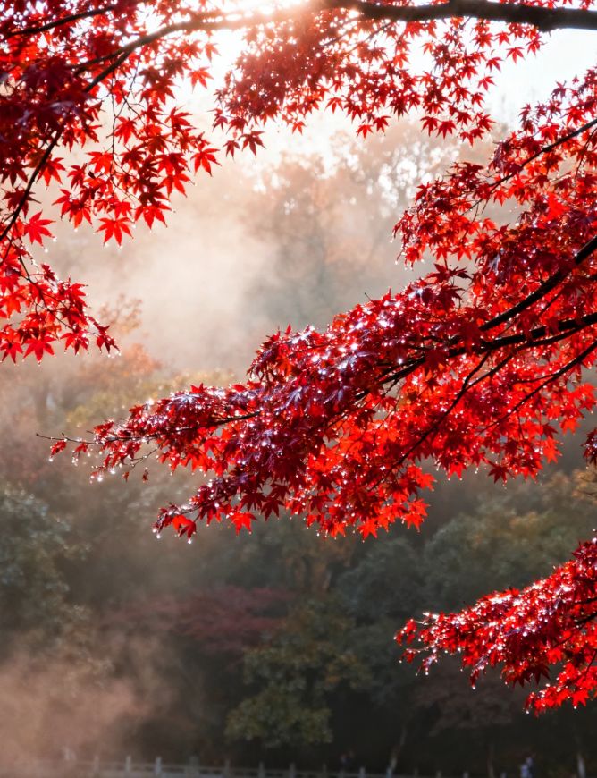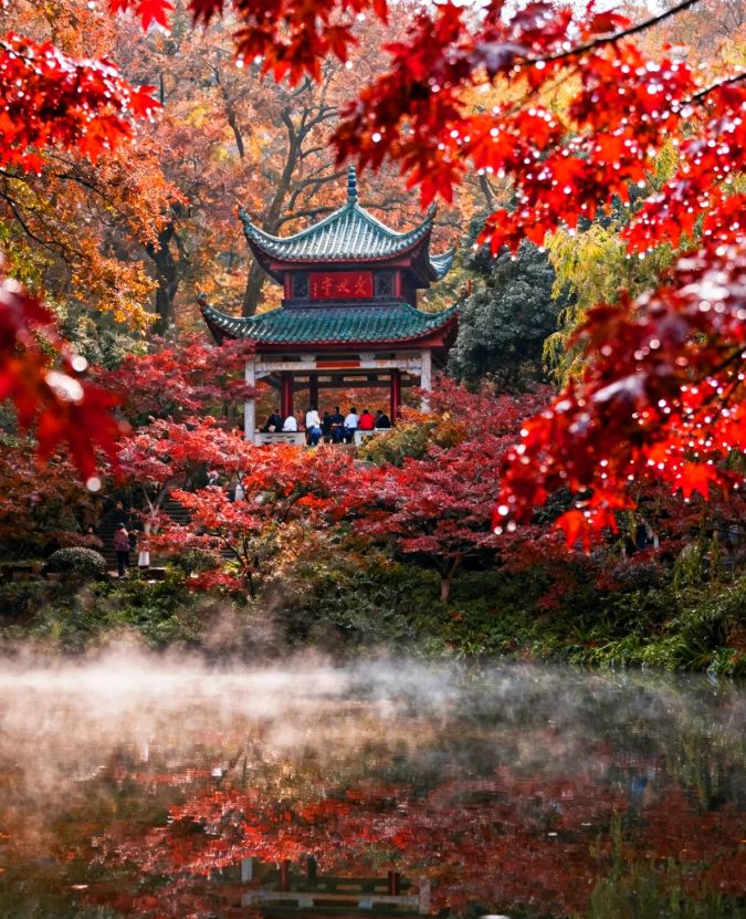 几乎所有人上岳麓山,都直奔爱晚亭拍张照,然后沿大路去麓山寺或云麓宫。我却从爱晚亭旁一条极不起眼的小路下行,步入枫林深处。石阶很快消失,变成泥土小径,耳边响起潺潺水声——这是兰涧的源头。溪水清浅,流过红黄落叶,阳光透过尚未落尽的枫叶,洒下跳动的光斑。