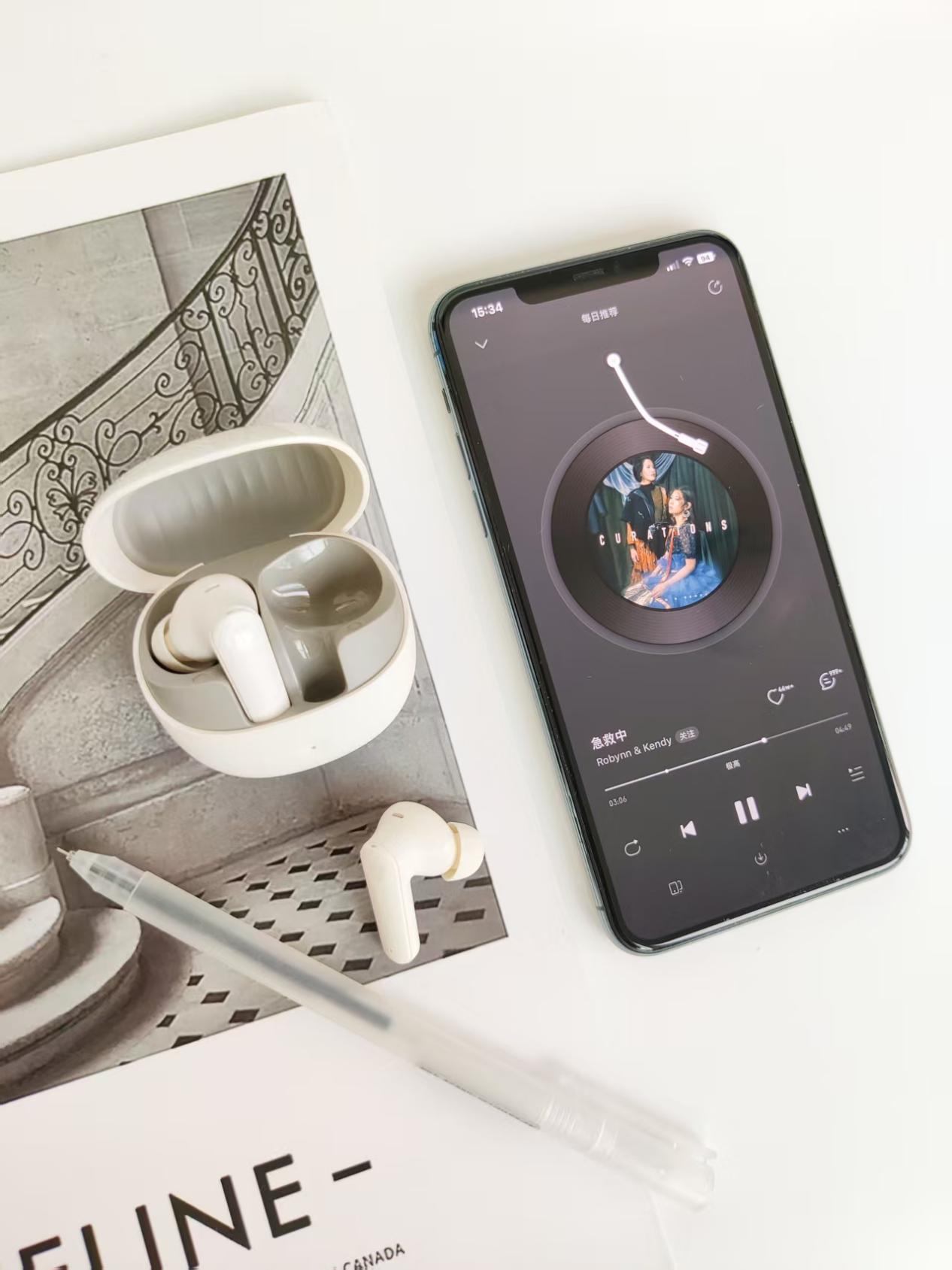 音质表现:10mm动圈单元,配合华为自研声学的算法,三频是均衡的,中低频浑厚,高频通透,作为日常听歌和通话都够用。