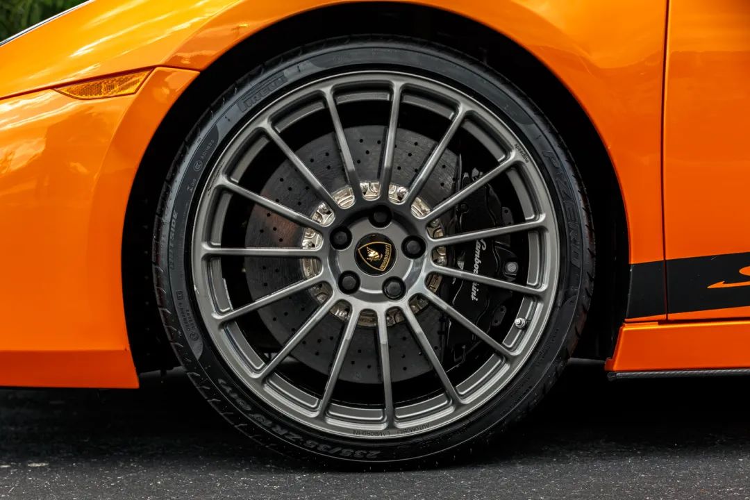 Superleggera提供四种颜色选择:Midas Yellow、Borealis Orange、Telesto Gray和Noctis Black。新型Scorpius锻造轮毂上的倍耐力P Zero Corsa轮胎(标配)突显了兰博基尼Gallardo Superleggera的特点。