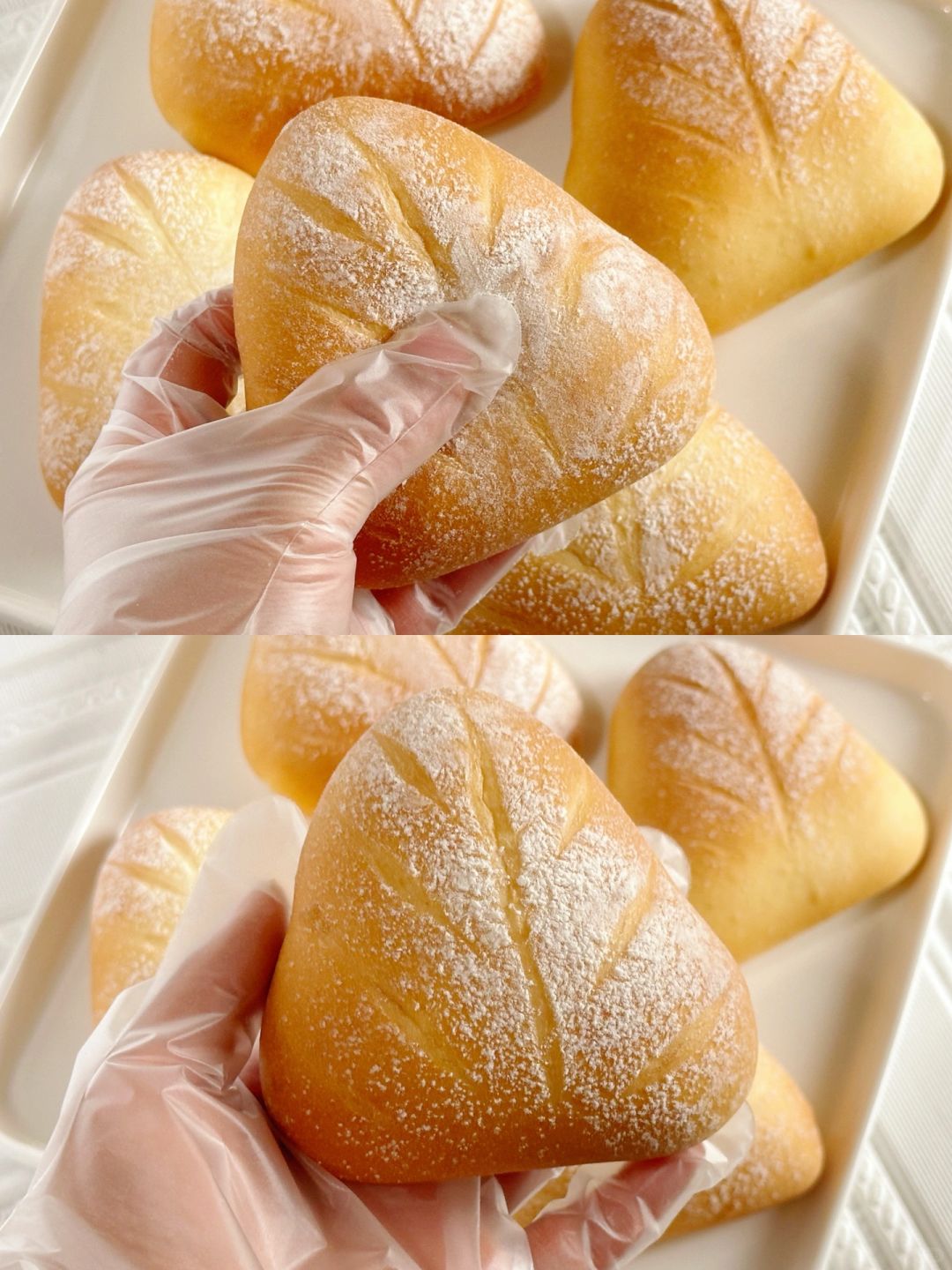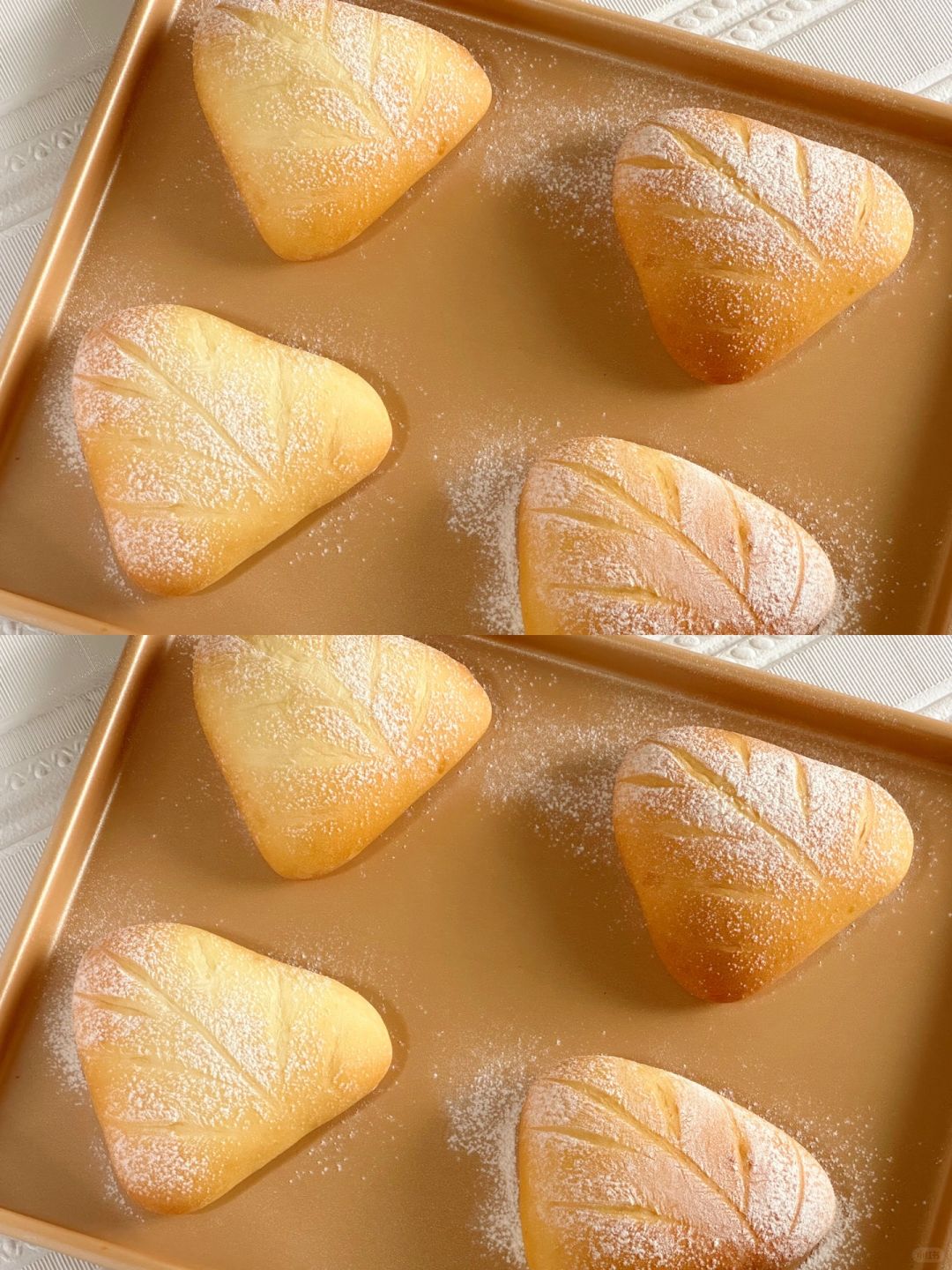 6️⃣全部做好后,放入高比克f4发酵箱发酵至两倍大,发酵好后表面筛高粉,割出花纹。