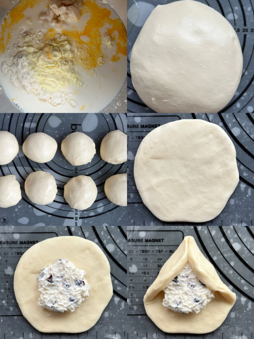 🔸馅料:奶油奶酪220g,细砂糖20g,蔓越莓30g